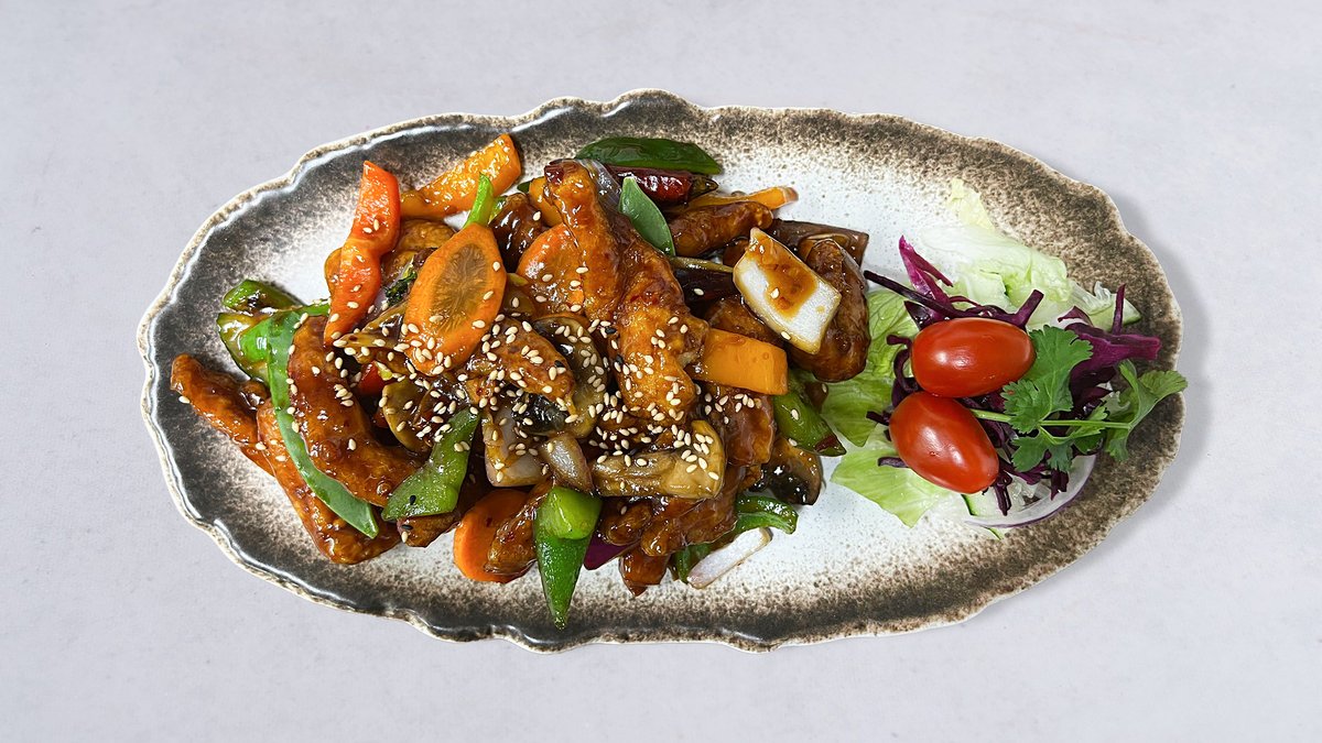 Tofu, flour, starch, qarlic, chili and special soya sauce.