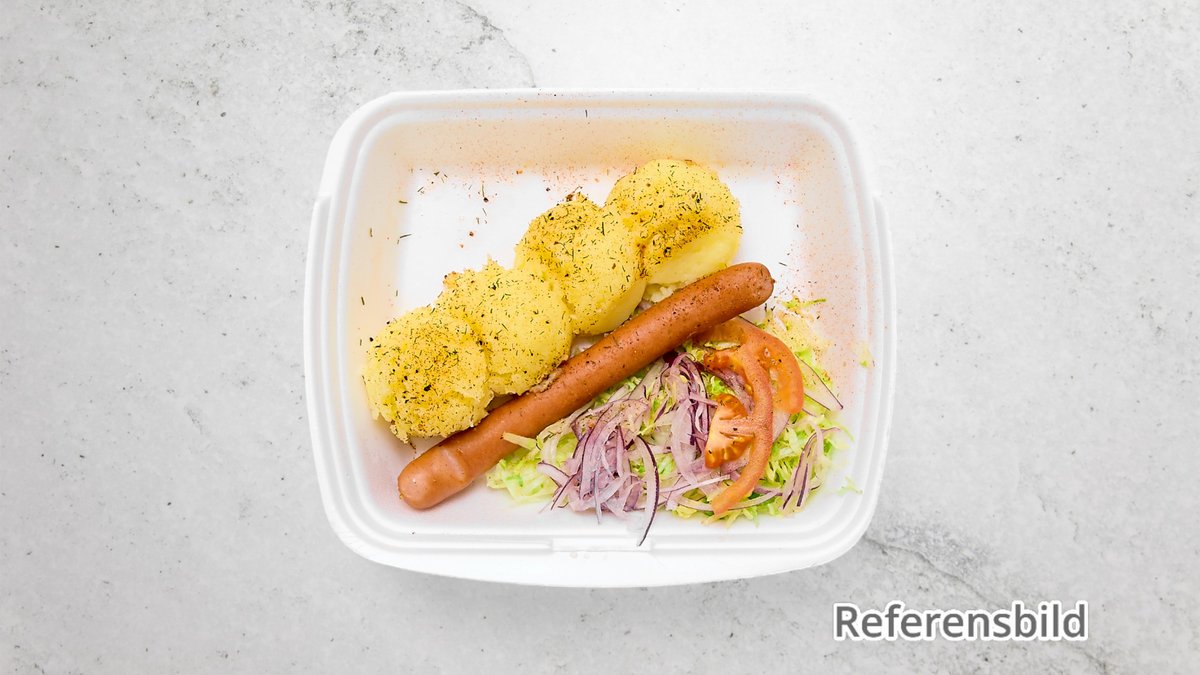 Serveras med valfri tjockkorv, räksallad, grönsaker och potatismos.