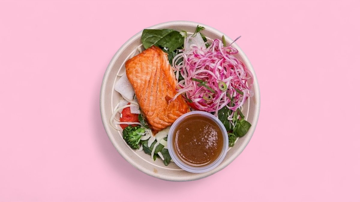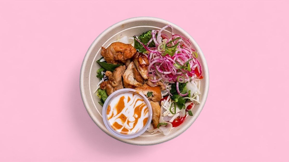Välj först protein. Därefter kan du lägga till bas, sås, garnering och andra tillbehör.