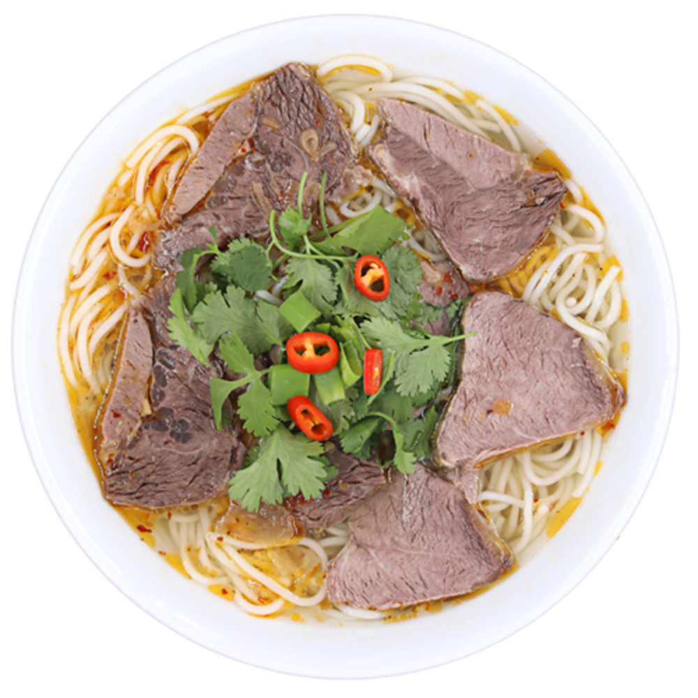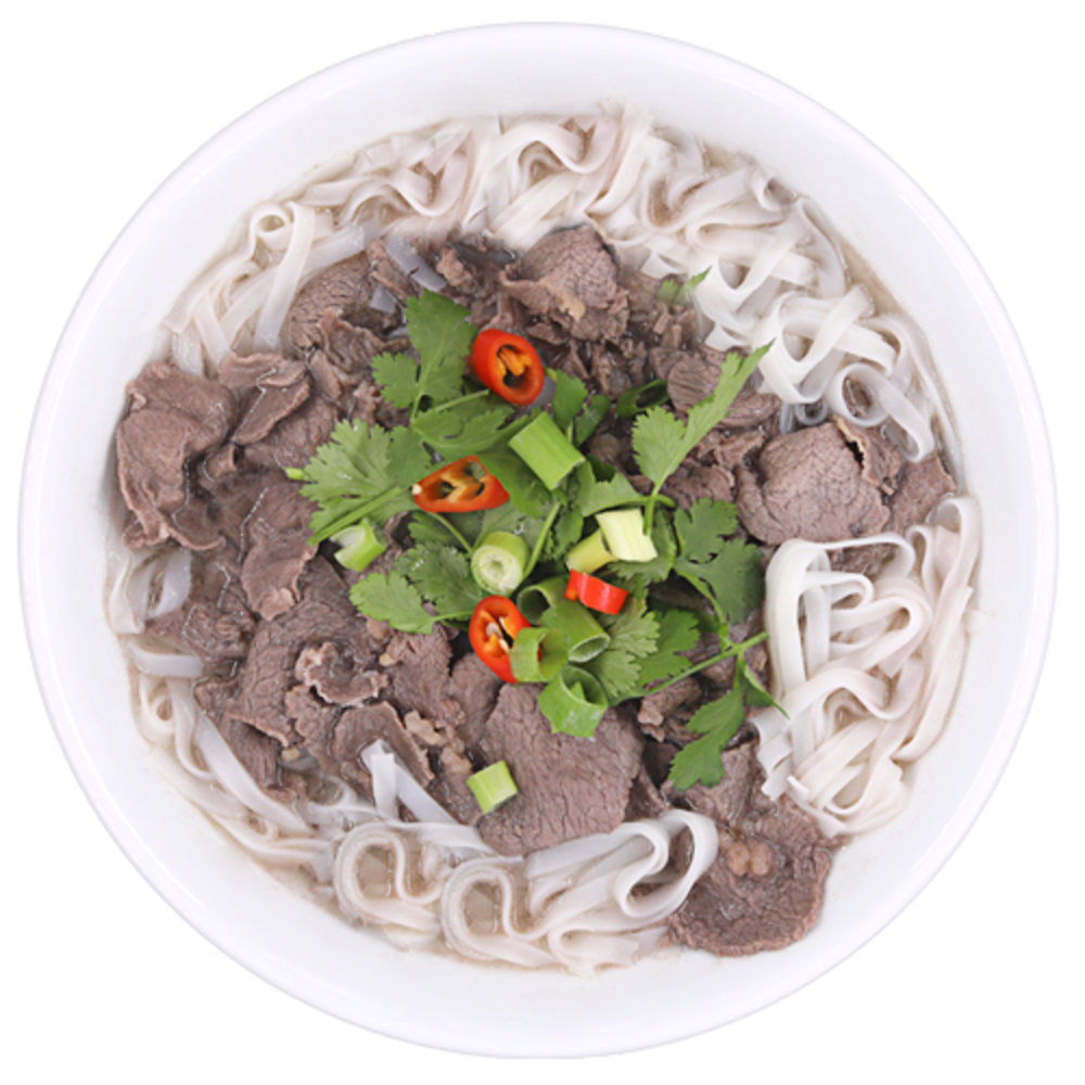 Klassisk vietnamesisk risnudelsoppa med biff. Toppad med koriander och salladslök.
