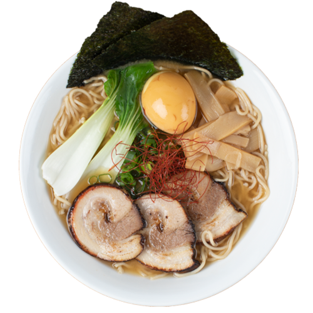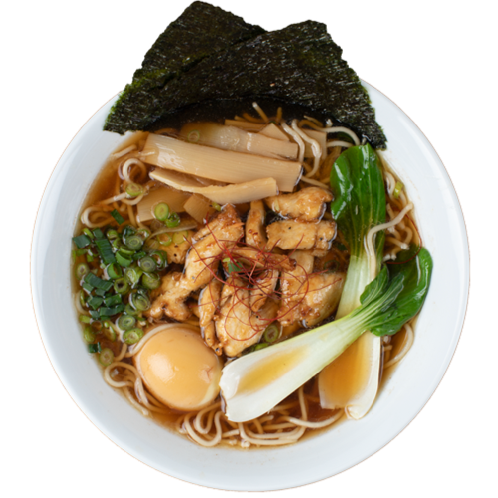 Shoyu i kycklingbuljong med egengjorda ramen nudlar. Toppad med ett löskokt ägg, inlagda bambuskott, pak choi och salladslök.