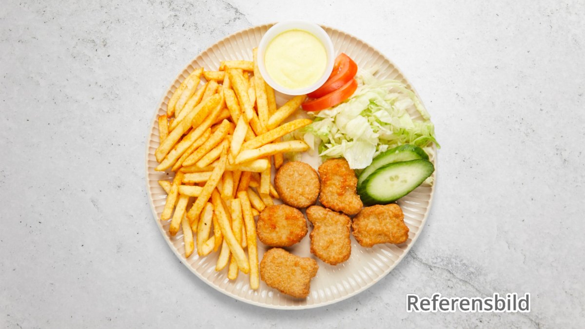 Friterad kyckling och pommes frites.