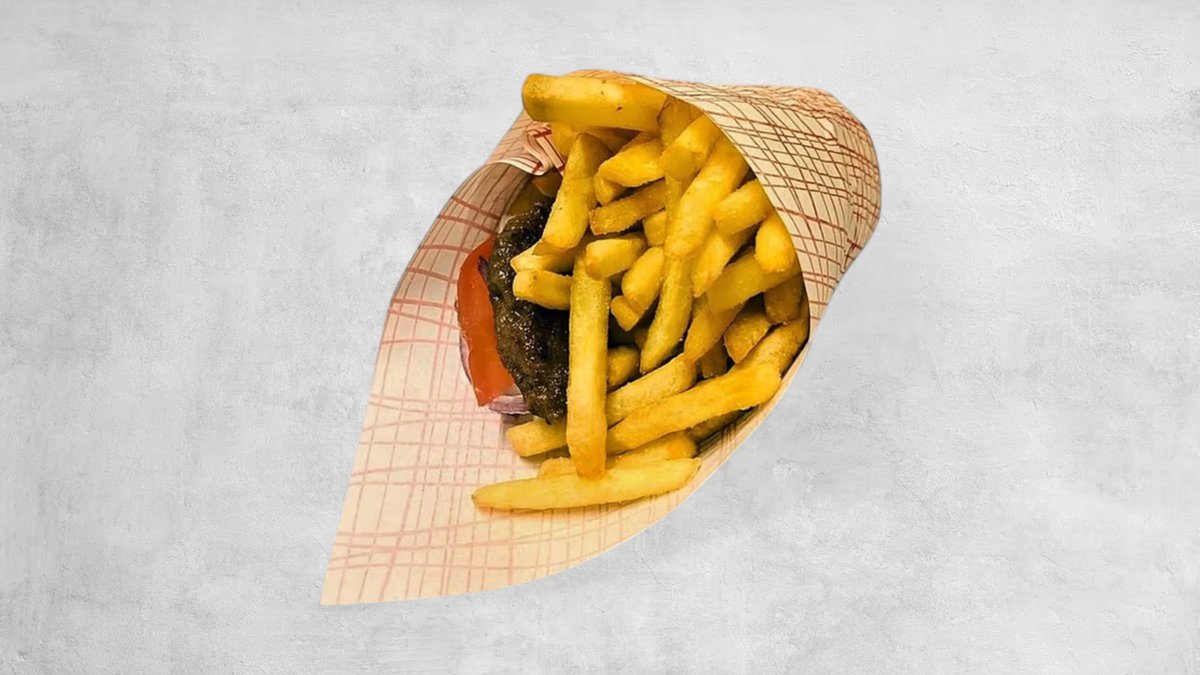 2 st nötfyllda hamburgare med ost. Serveras med pommes eller ris, pitabröd, grekisk oregano och tzatziki.