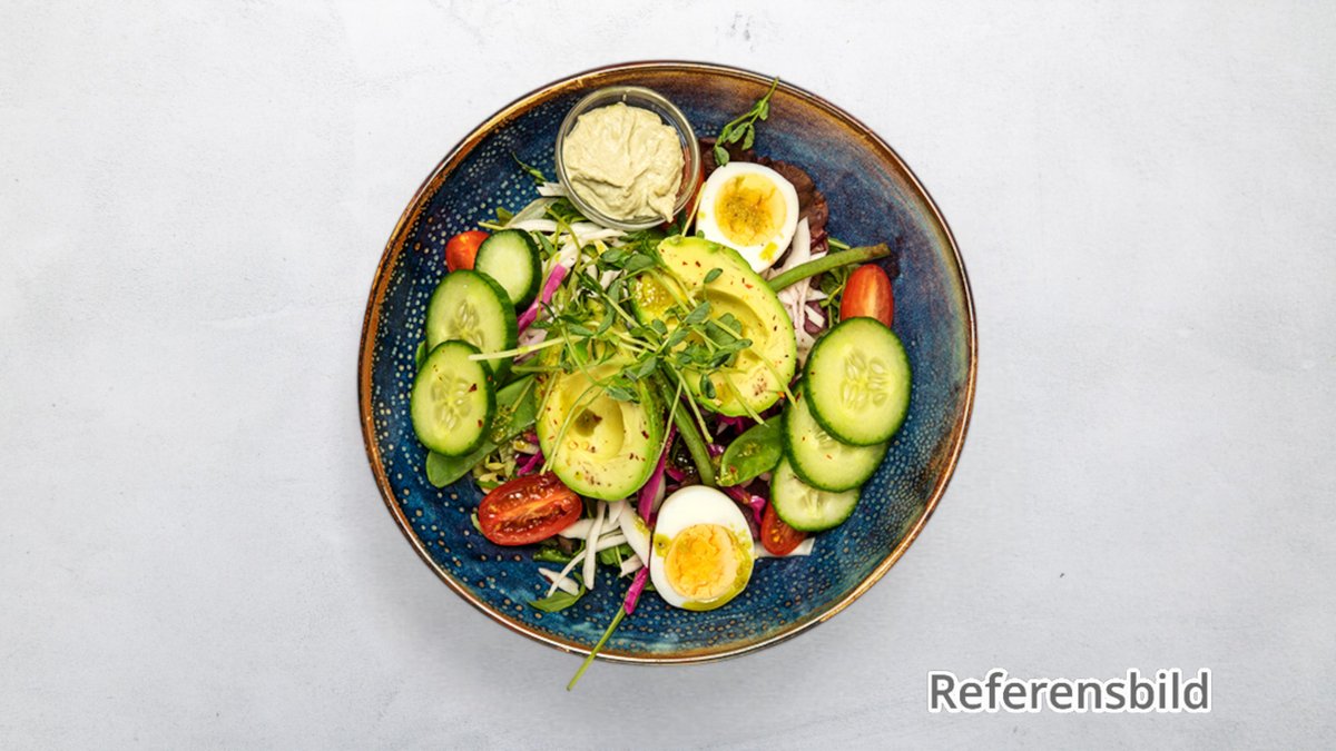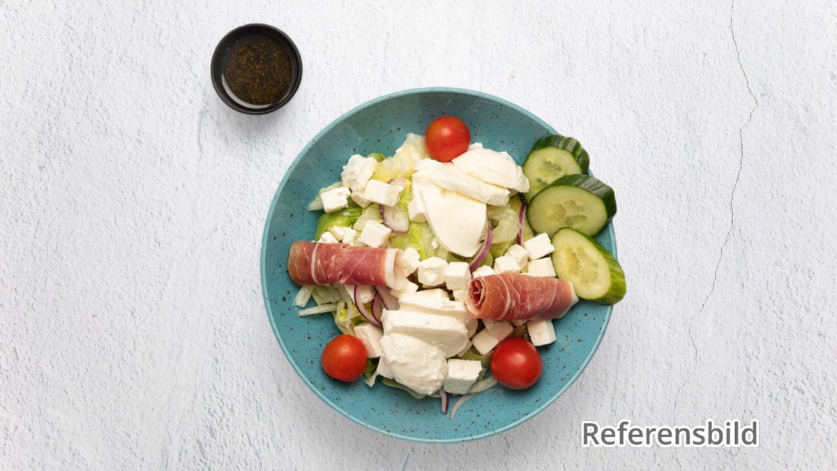 Grönsaker, pasta, bulgur eller quinoa och valfri dressing ingår i alla sallader