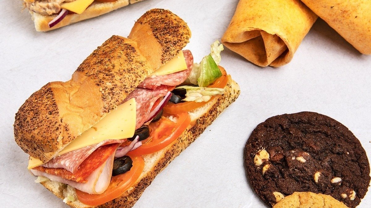 En fullmatad Sub med salami, pepperonikorv, skinka* och ditt val av grönsaker. En smakrik och generös Sub du knappt kan vänta med att sätta tänderna i. I menyn ingår 0,33 l burk och Cookie/Chips/Waffle Fries.