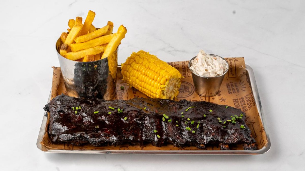 Våra berömda ribs serveras med coleslaw, corn on the cob & fries.