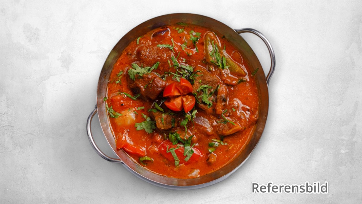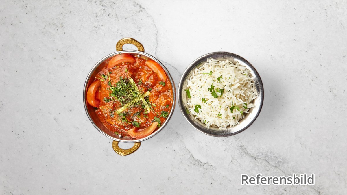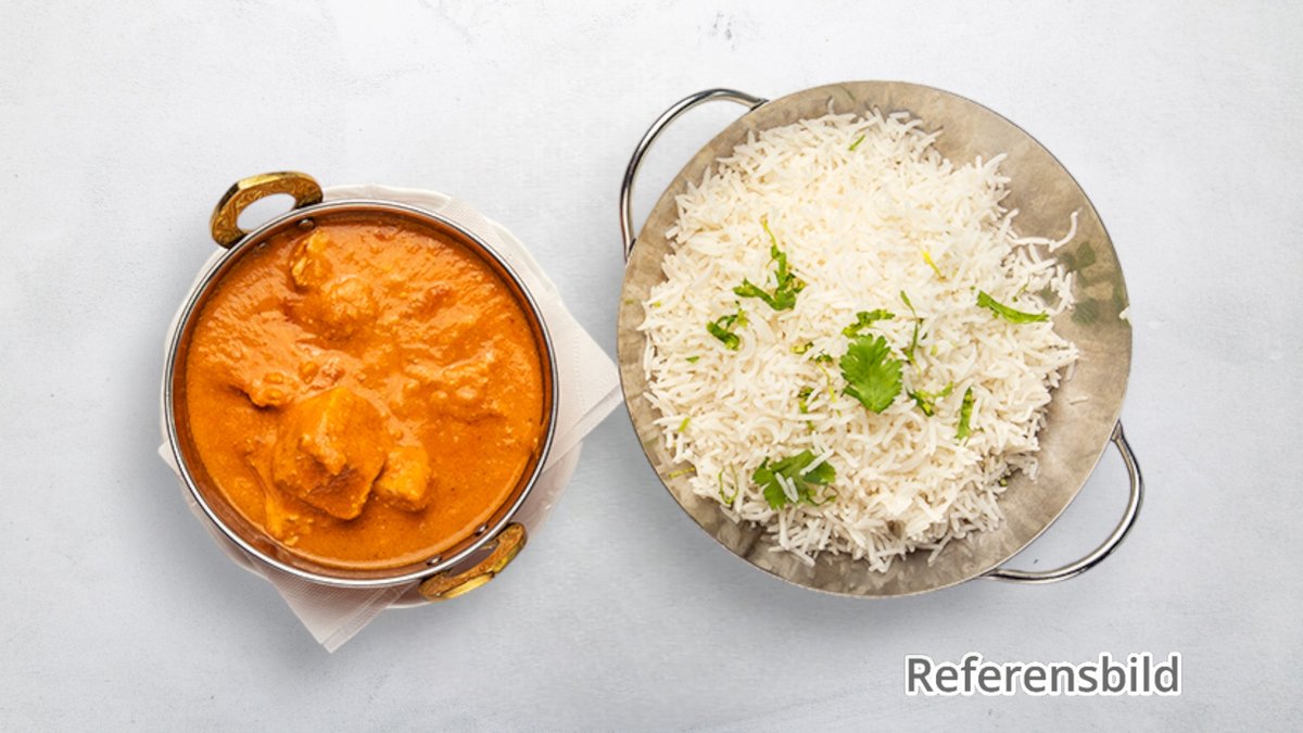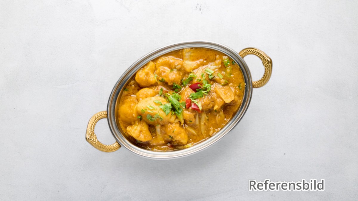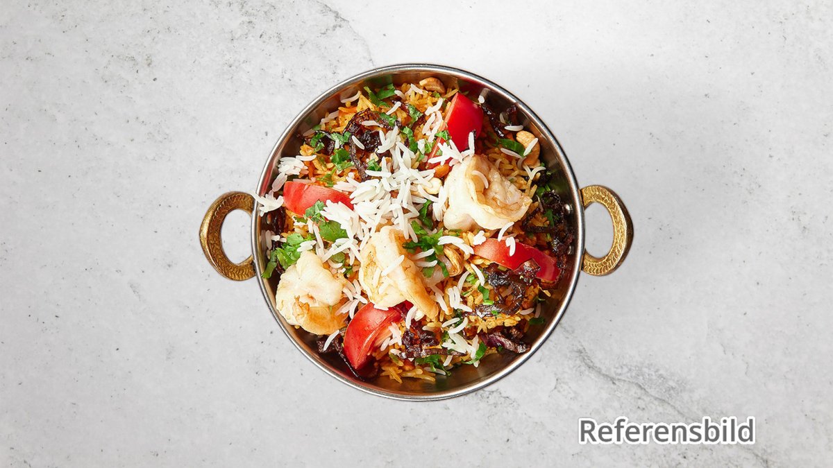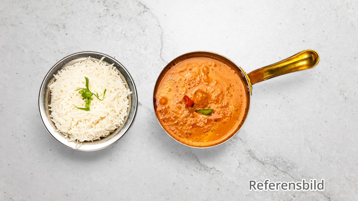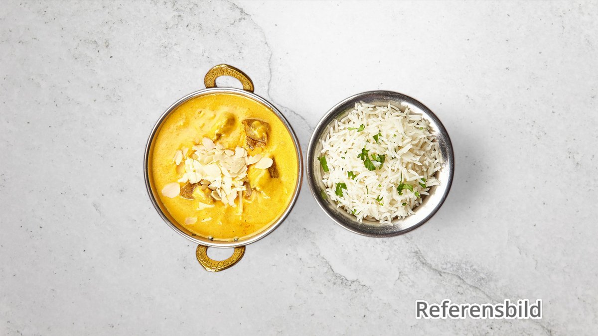 Räkor, kishmishbaserad sås och kokosmjölk.