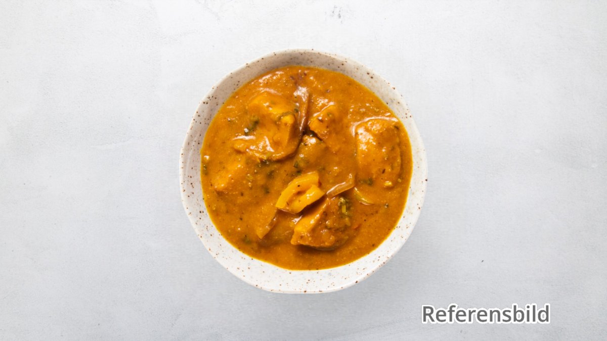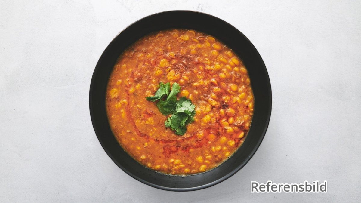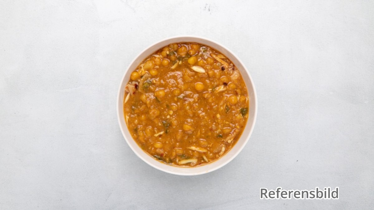 Kikärtor i en kryddstark sås med tomater, vitlök, lök, ingefära, chili och a koriander.