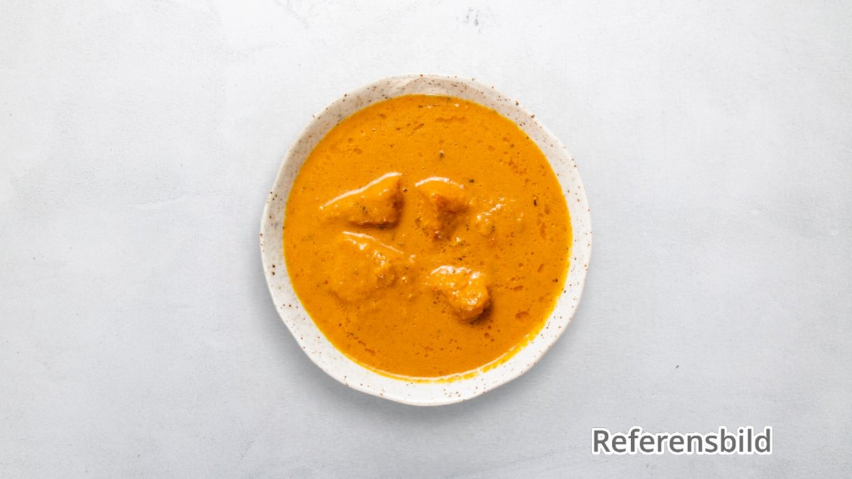 Grillad kycklingfilé med mango, grädde, tomat och nötter. Serveras i kokos yoghurtsås.