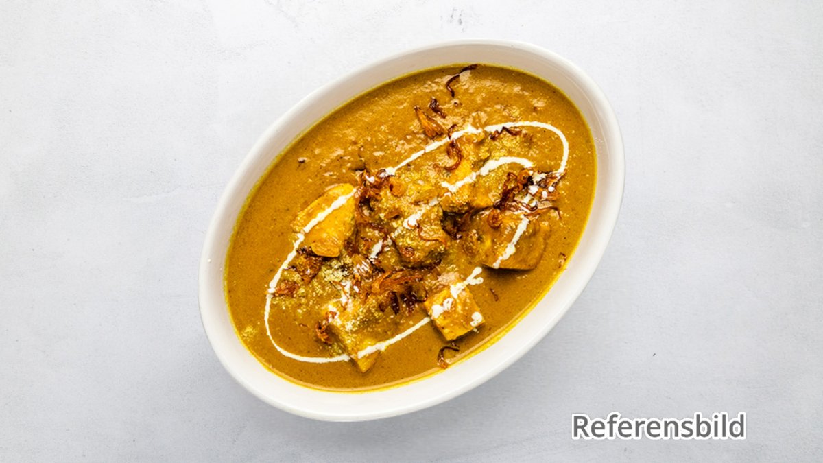 Hemlagad stekt ost marinerade i yoghurt och kryddor. Serveras i mild gräddsås.