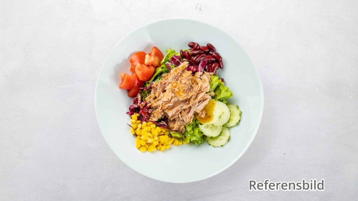 I alla sallader ingår isbergssallad, champinjoner, lök, gurka, majs, gurka, oliver, ananas och ost.