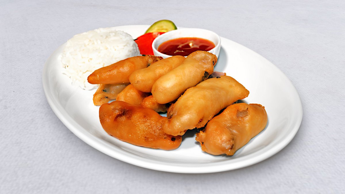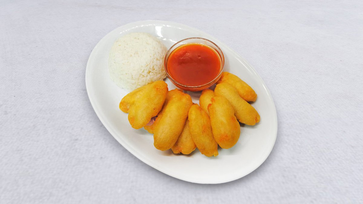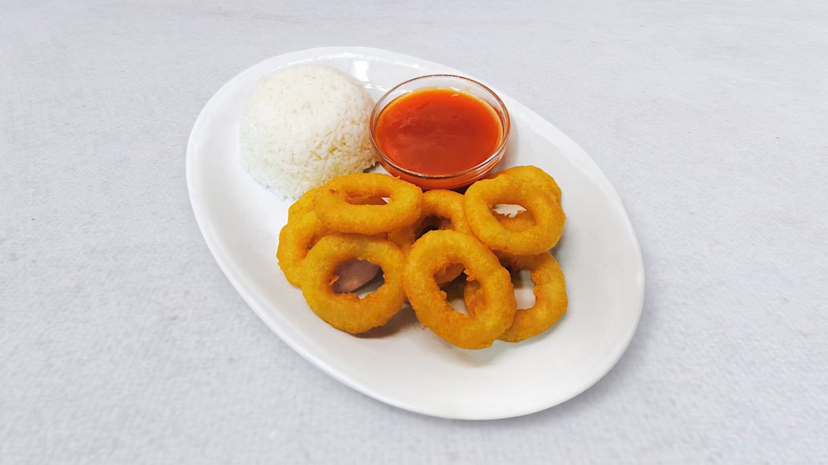 19a. Friterad Bläckfiskringar Med Sötsursås & Ris