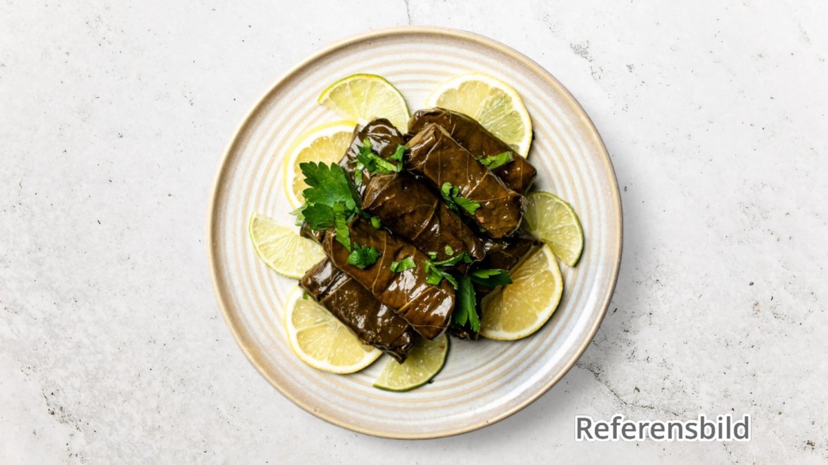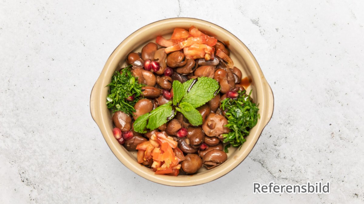 Romansallad, tomat, gurka, lök, rädisor, bröd, citronjuice och mynta.