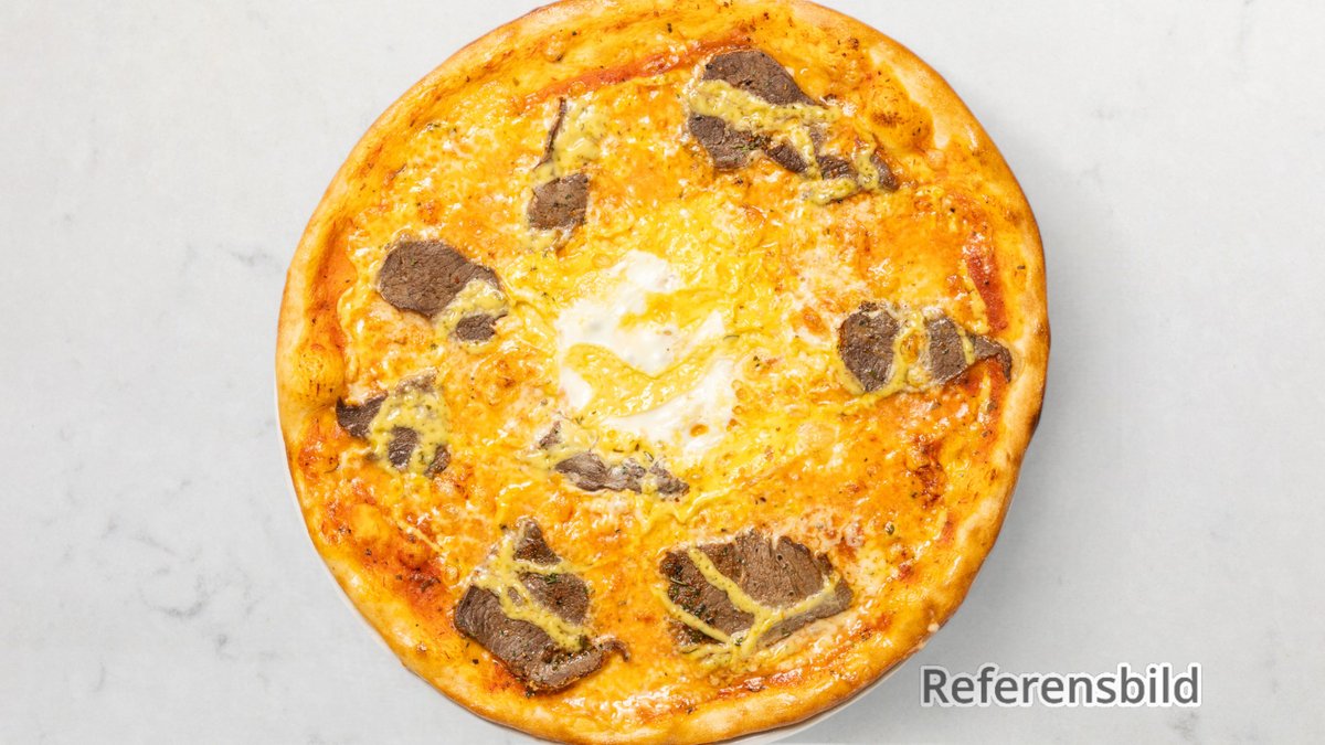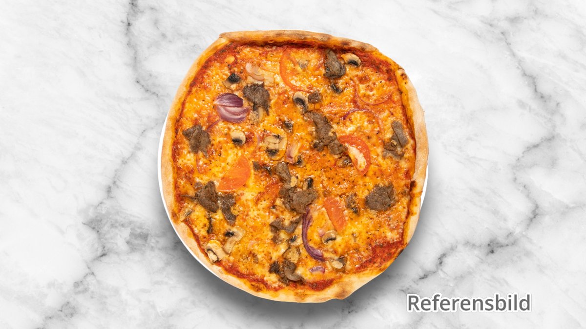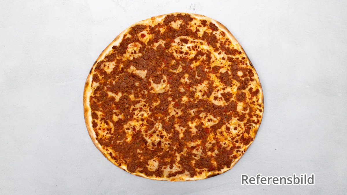 Köttfärssås, lök, tacosås, jalapenos tacokrydda tomatsås, ost, skinka, jalapeño och tacokrydda.