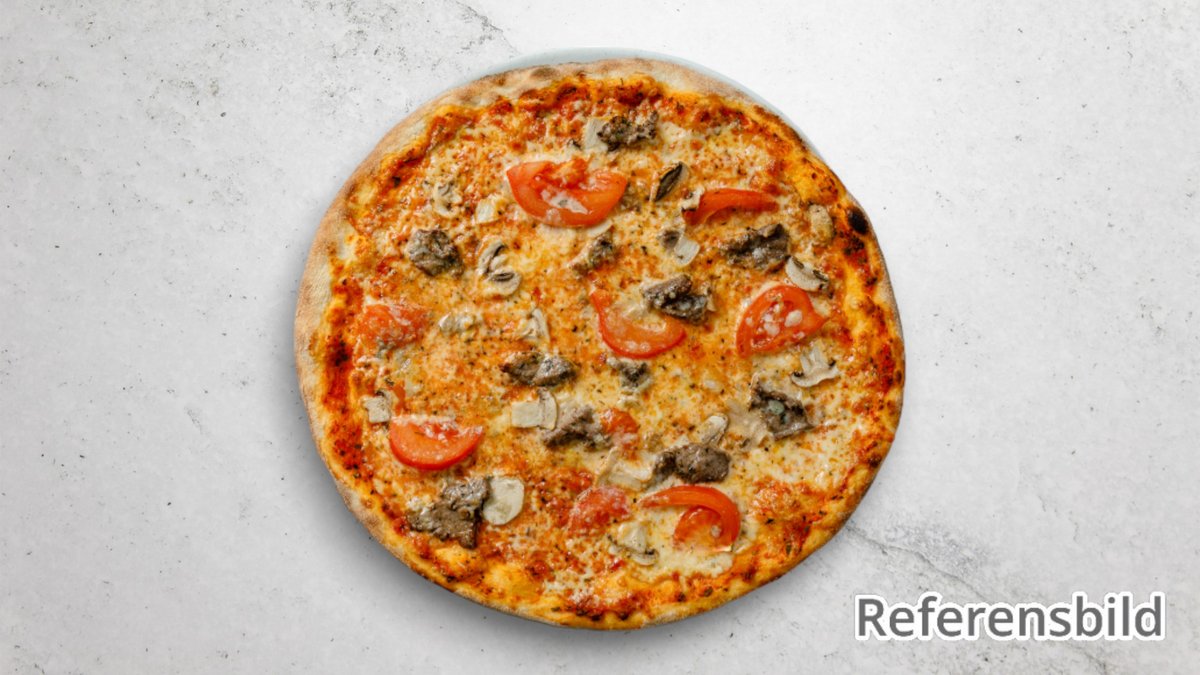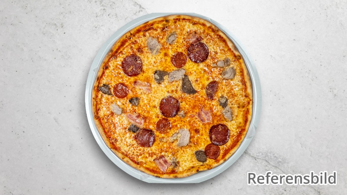 Skinka, räkor, champinjoner, musslor, oliver och kronärtskocka.