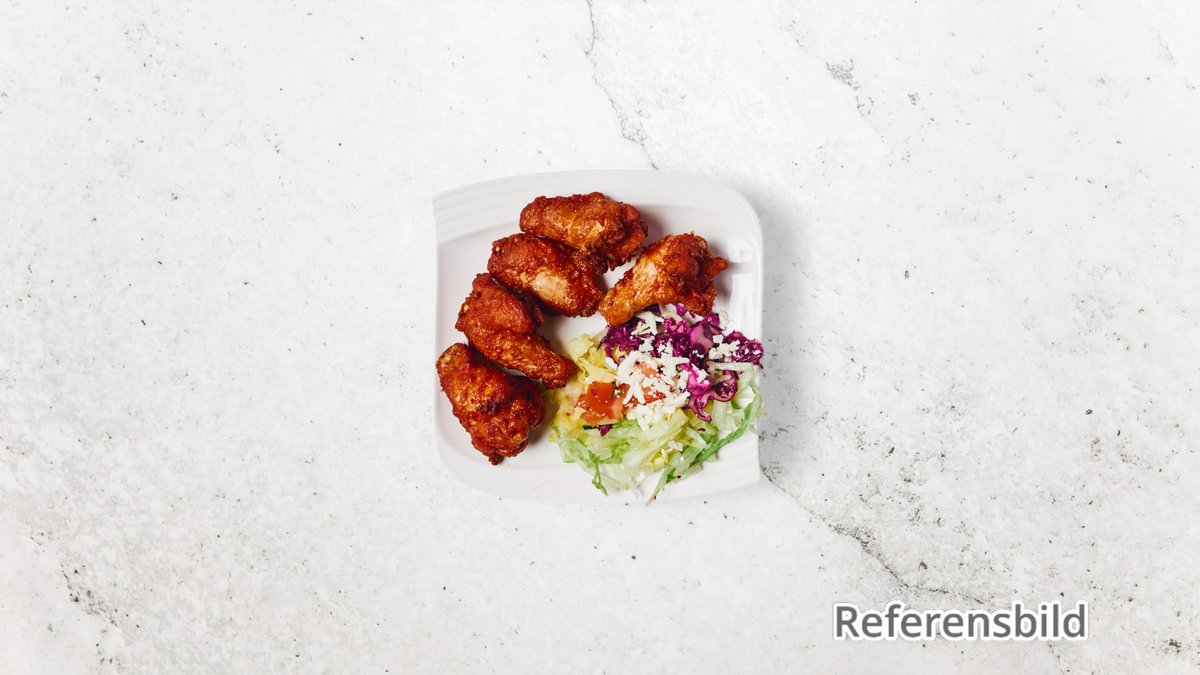 Friterade crispy chicken mini fillets glaserade i buffalosås, toppade med bluecheese dressing.