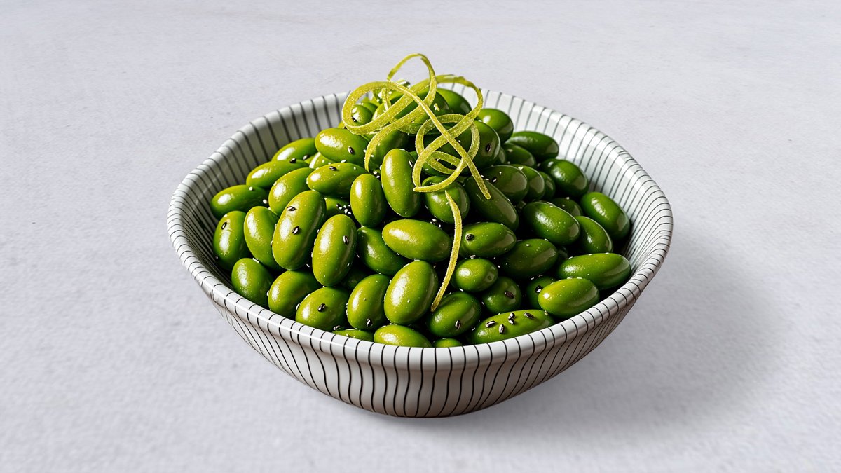Sojabönor utan skal med citron, salt och persilja.