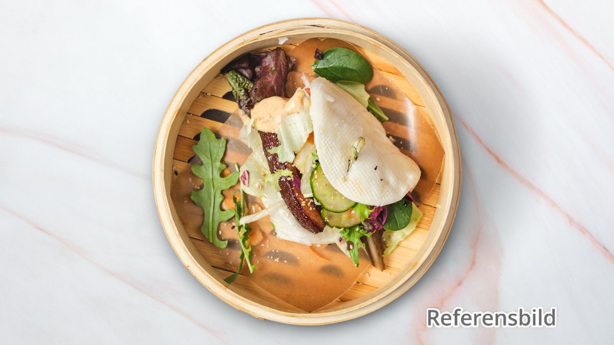 Gurka, chilimajonnäs, picklad rödlök, forellrom, wasabi och vårlök.