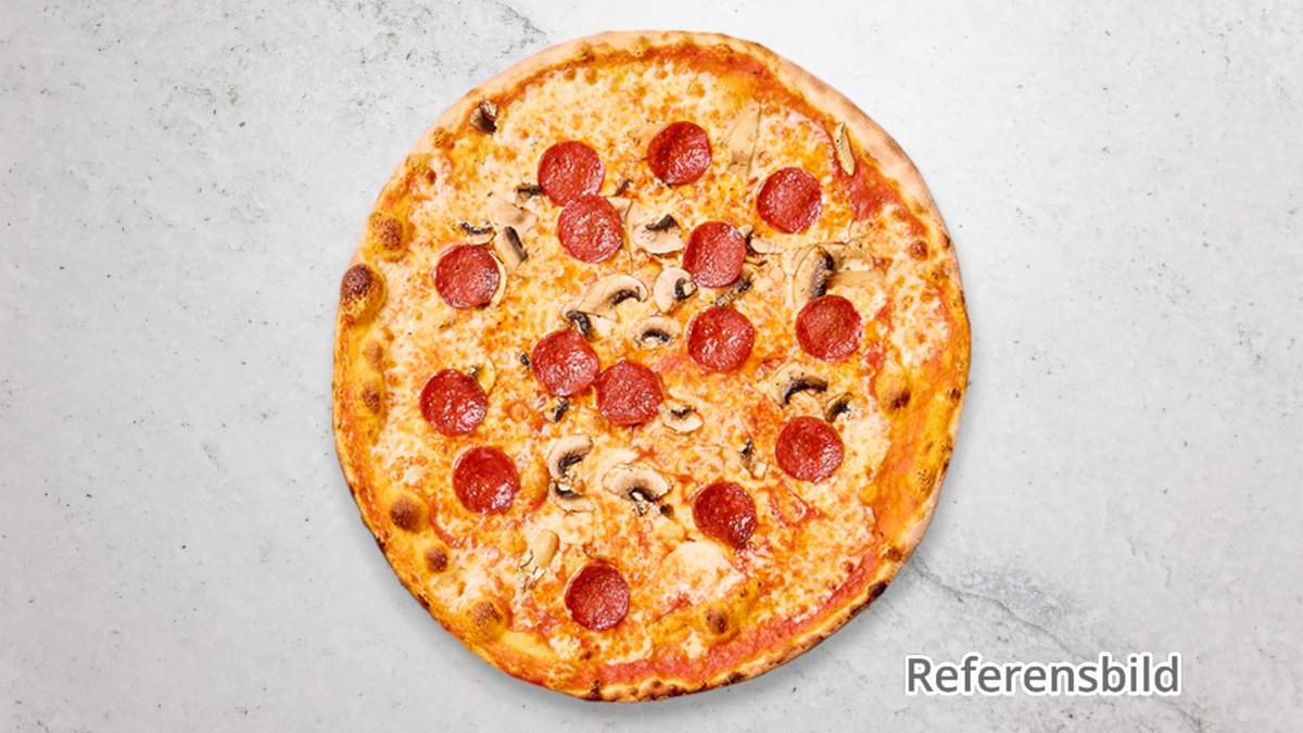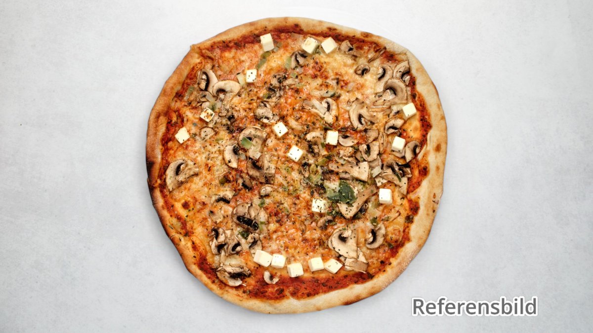 Pizza med champinjoner.