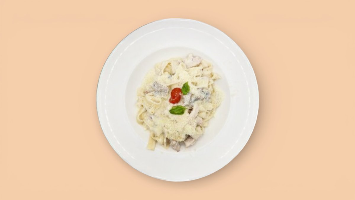 350гр макароны феттучине, куриное филе, сливки, шампиньоны, чеснок
