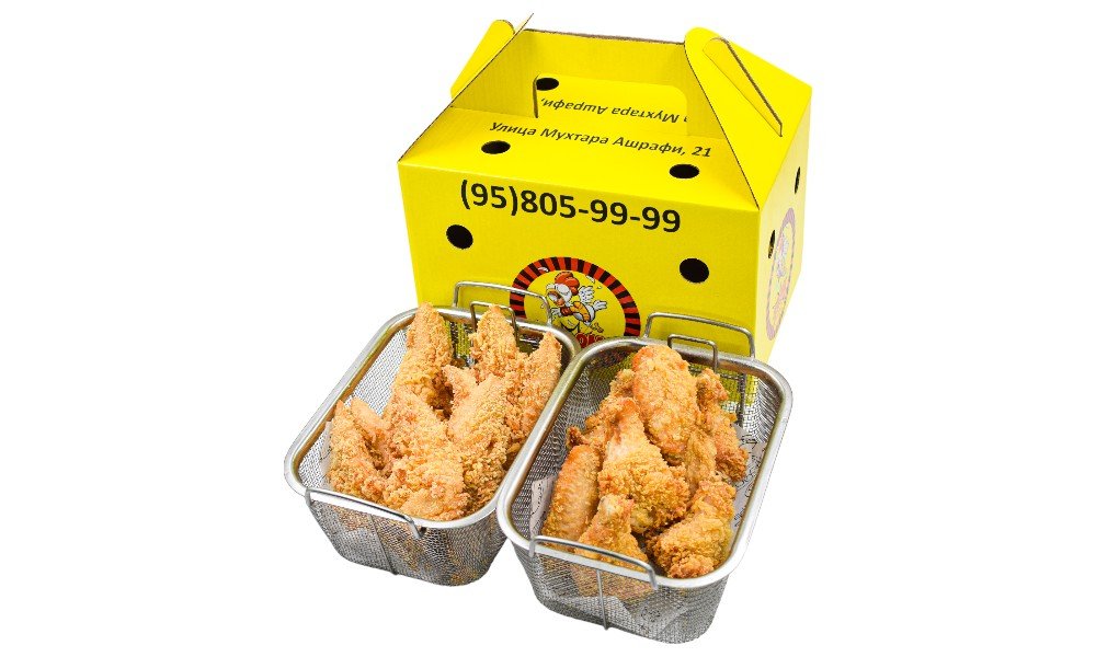 Экстремально острые и сочные куриные крылышки в хрустящей панировке + Нежнейшее и сочное куриное филе в хрустящей панировке В стоимость входит упаковка 1порция: Острые крылышки 500 гр и Куриные стрипсы 500 гр