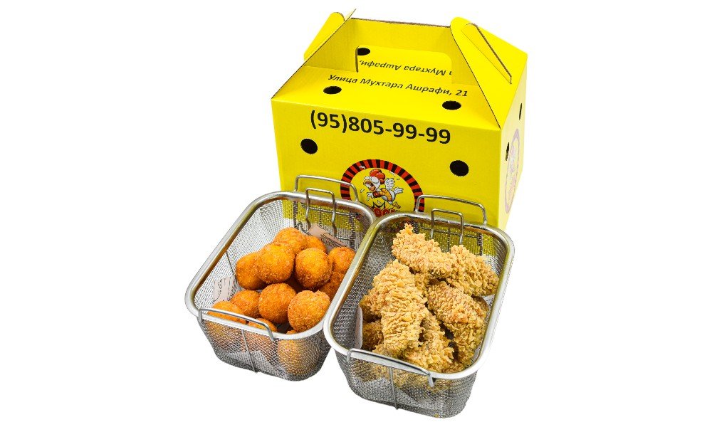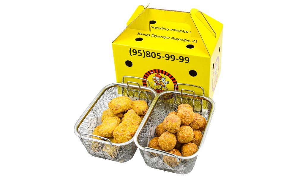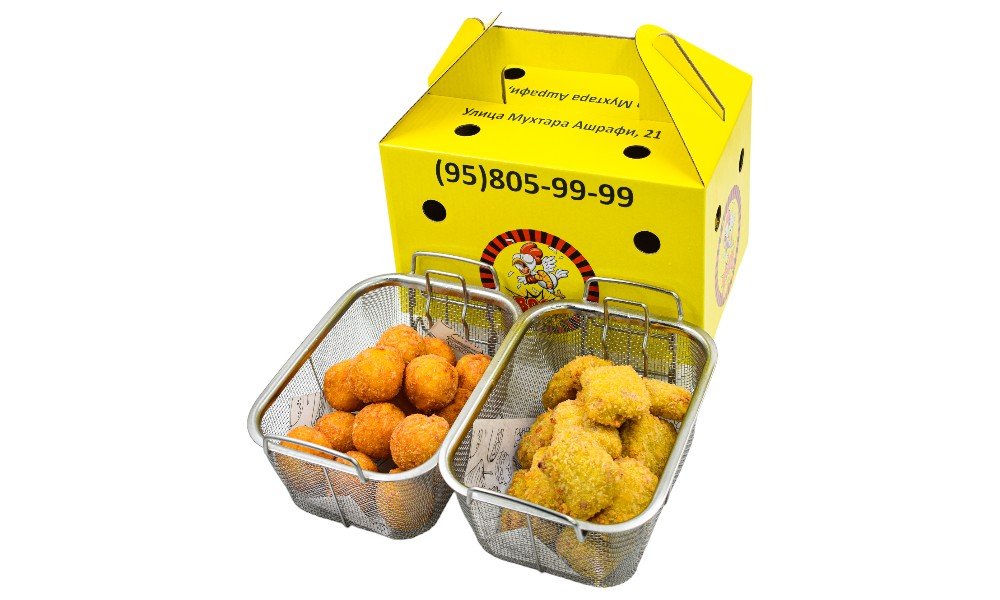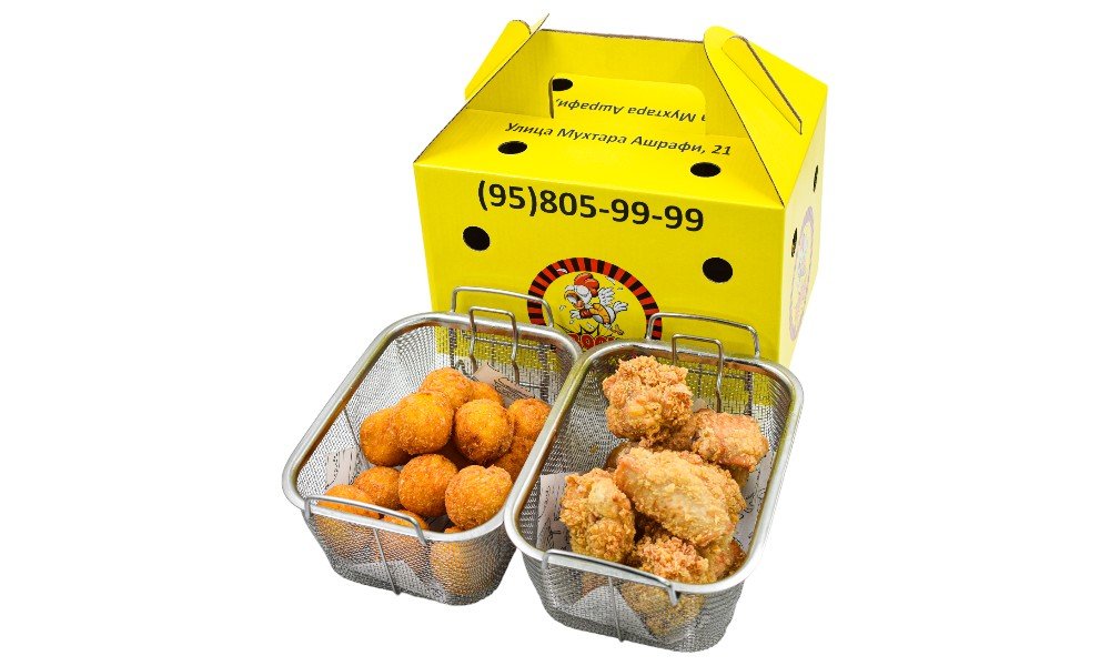 Хрустящие картофельные шарики с сыром + Экстремально острые и сочные крылышки в хрустящей панировке В стоимость входит упаковка 1порция: Картофельные шарики 500 гр и острые крылышки 500 гр
