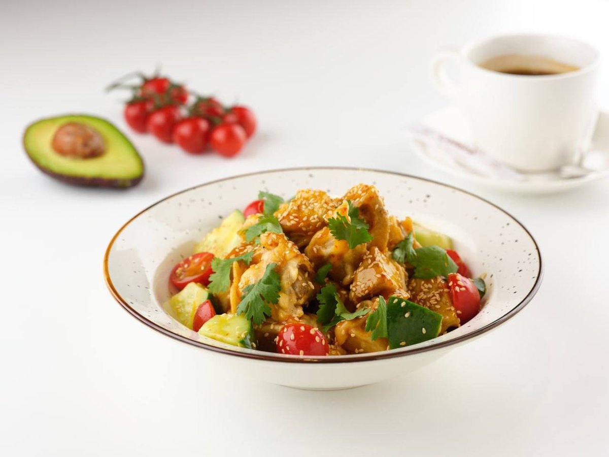 куриное филе, 3 вида болгарский, рикотта сыр, авокадо, руккола