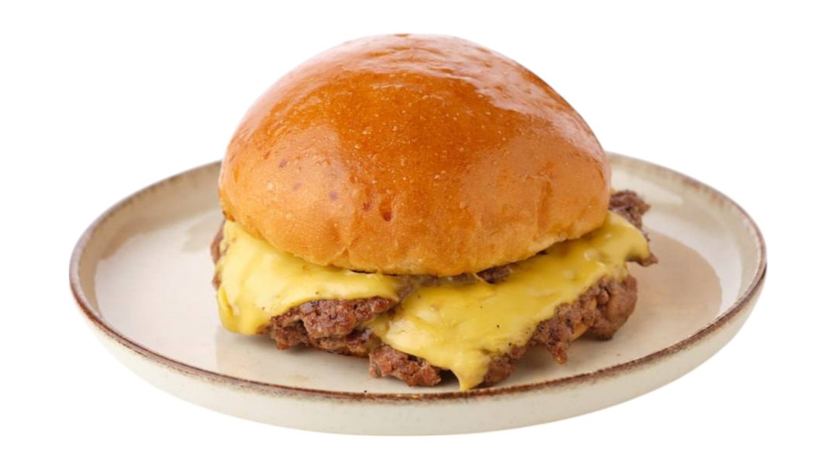 Три свежие котлеты (не замороженные)сир моцарелла. 3 чеддер. фырменный соусы.солёные огурцы.