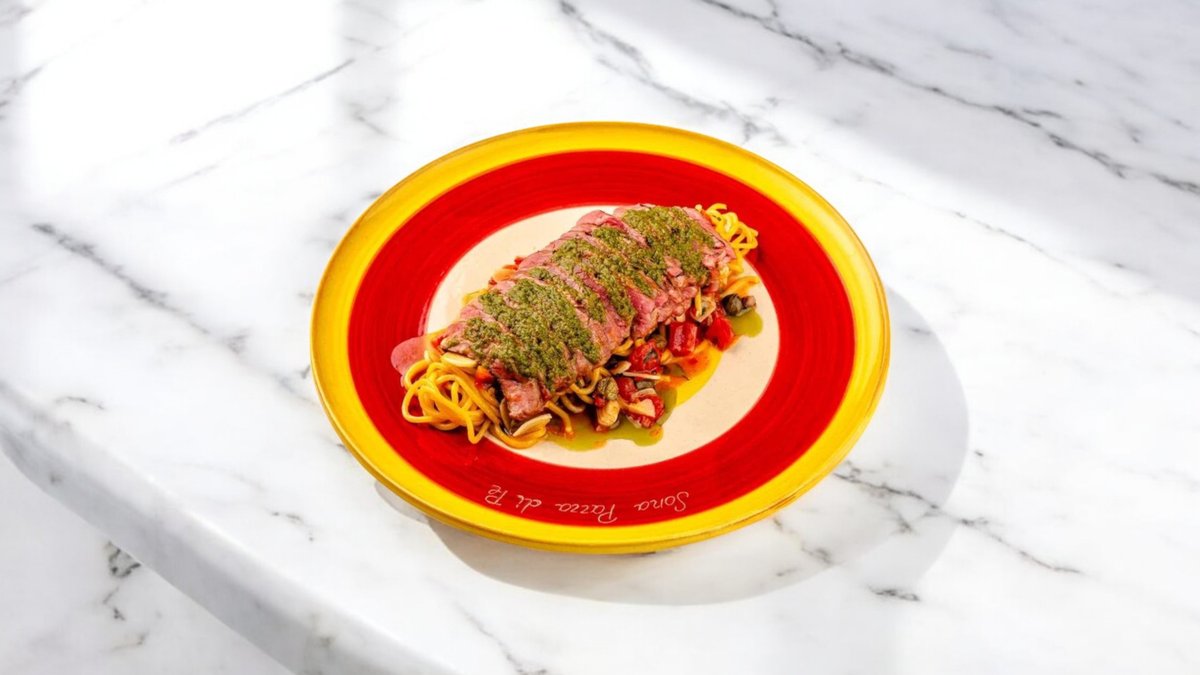 Салями пиканте, салями классико, Сальсичча из цыпленка, Салями Венская, Мортаделла, Оливики Каламата, Оливки Ночелара, сыр Моцарелла, каперсы, розовые томаты с Песто