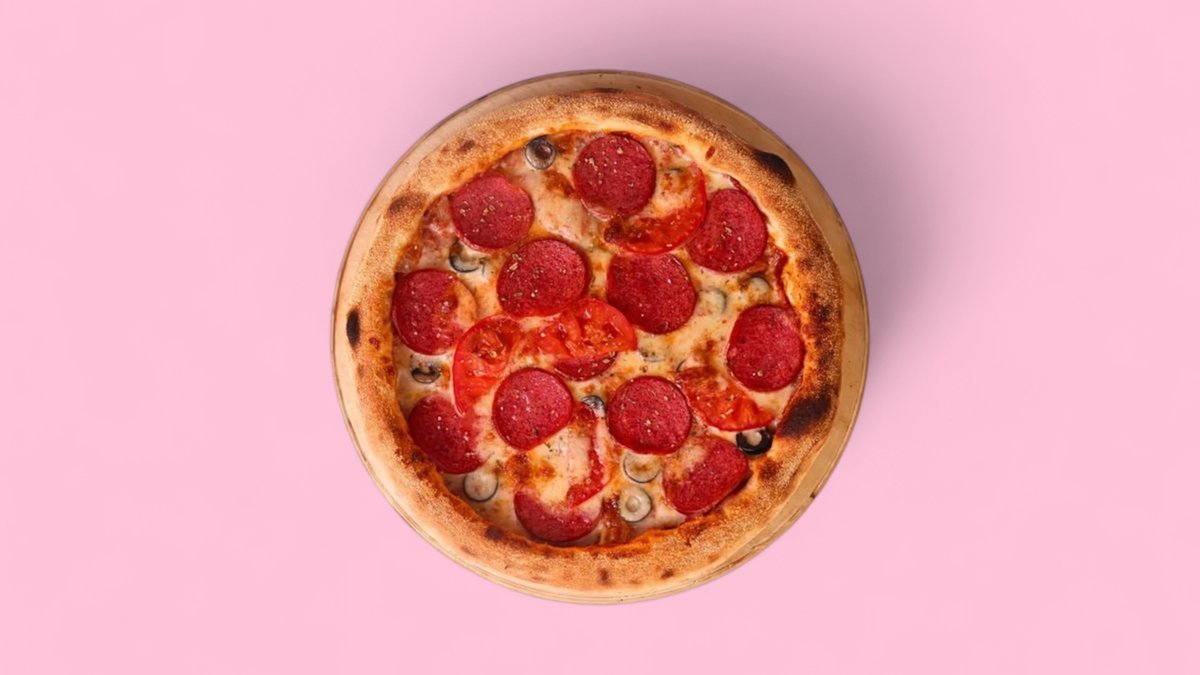 545 гр неаполитанское тесто, томатный мутти, сыр мацарелла, помидоры, колбаски пеперони, маслины
