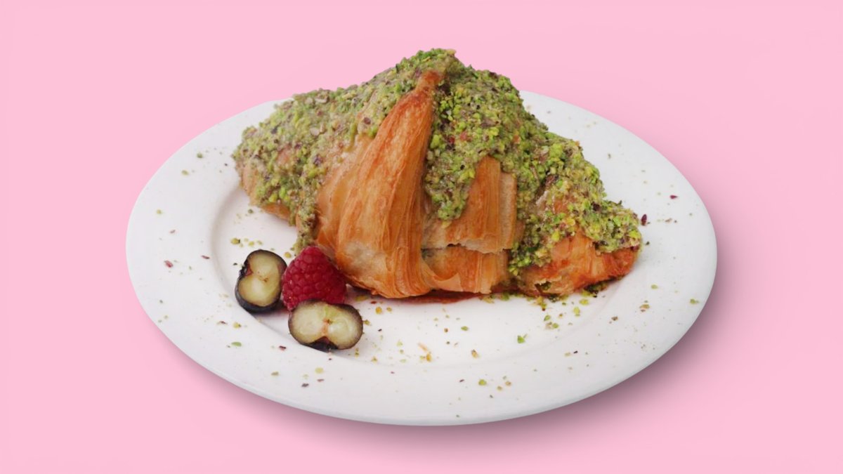 250 гр круассан, сахар, фисташка, сливочное масло,