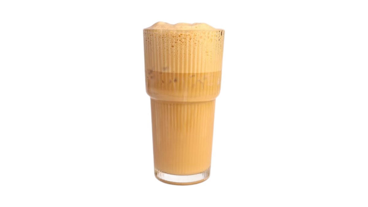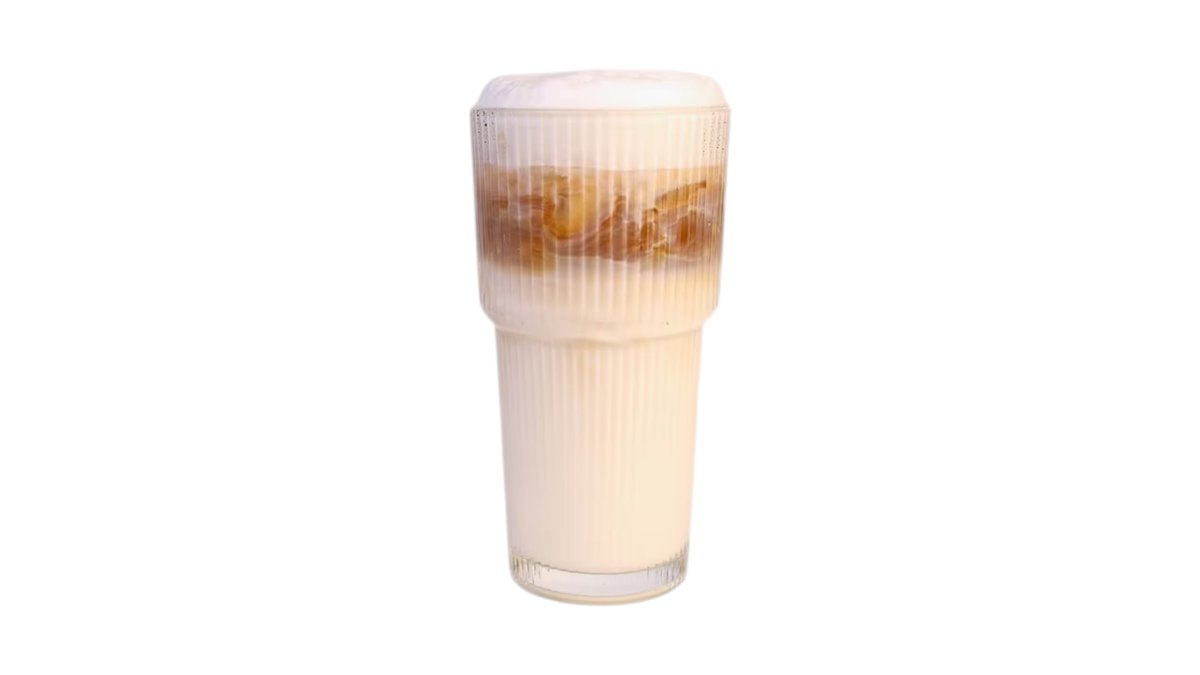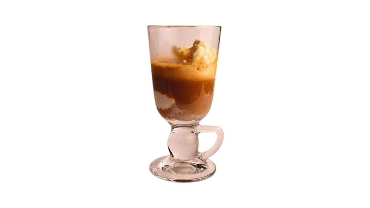 450мл кофе , лёд , молоко, сироп, мороженное, взитые сливки.