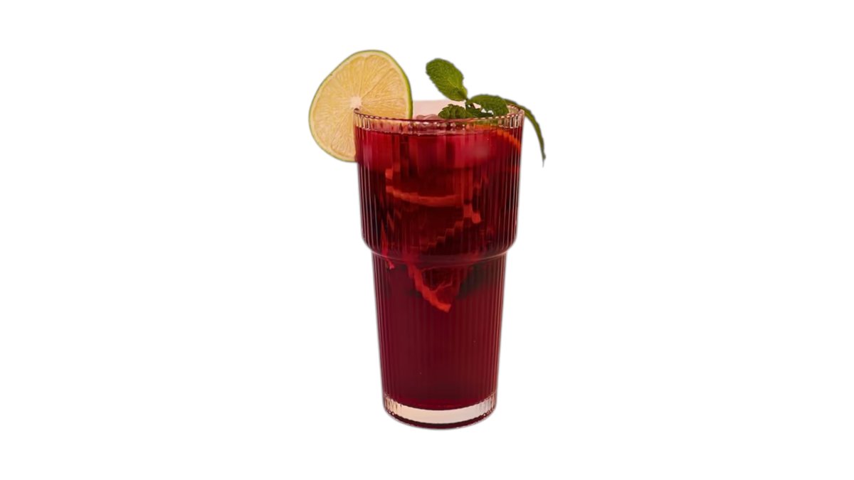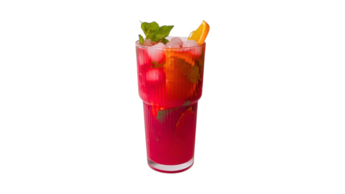 450мл Каркаде, ягодное пюре, ягодный сироп, апельсин, яблоко, мята,