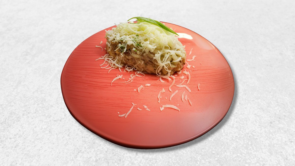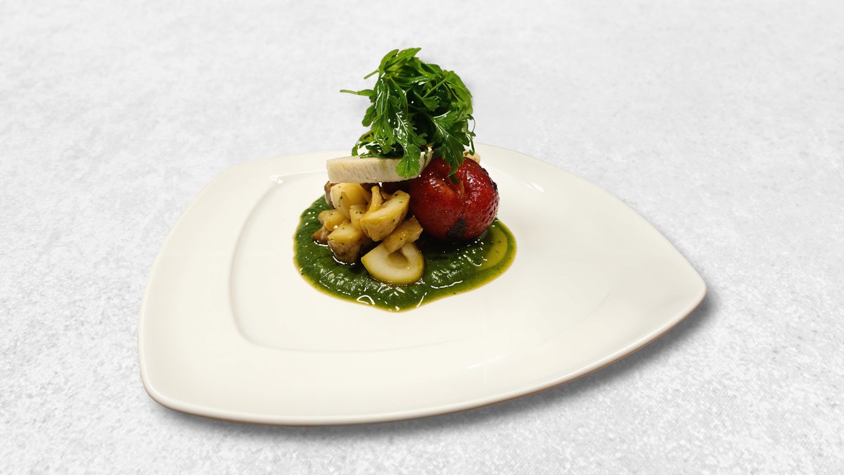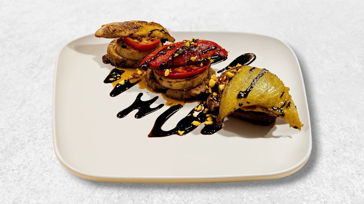 Говяжьи медальоны, кольца перца, лука, фисташковый соус (фисташки, чеснок, оливковое масло, лимонный сок, соль, перец).