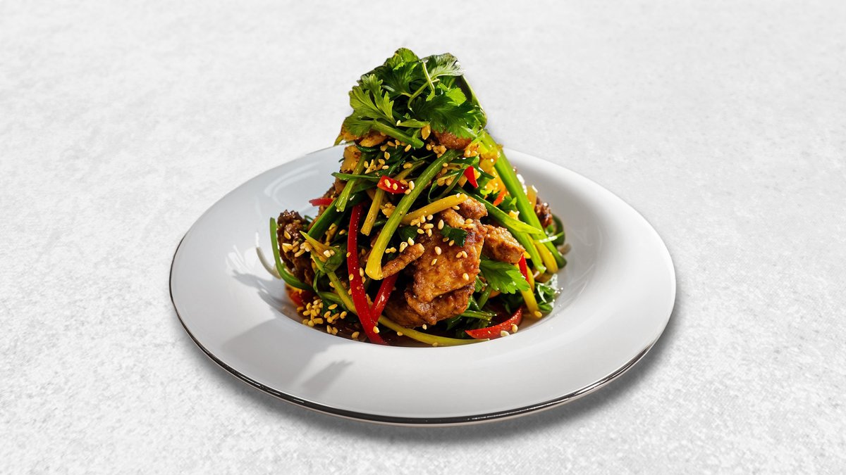 Горячая сковородочка с мясом и овощами в соевом соусе (говядина)