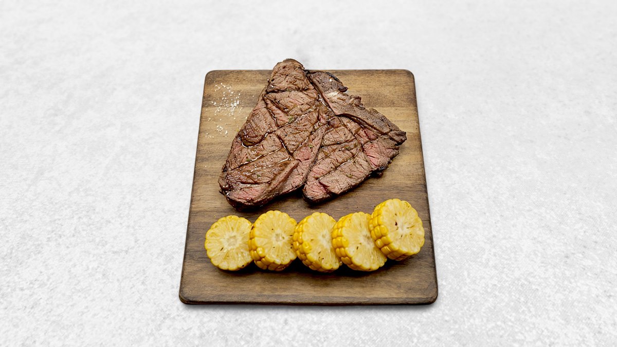 Стейк ти-боун с кукурузой и соусом