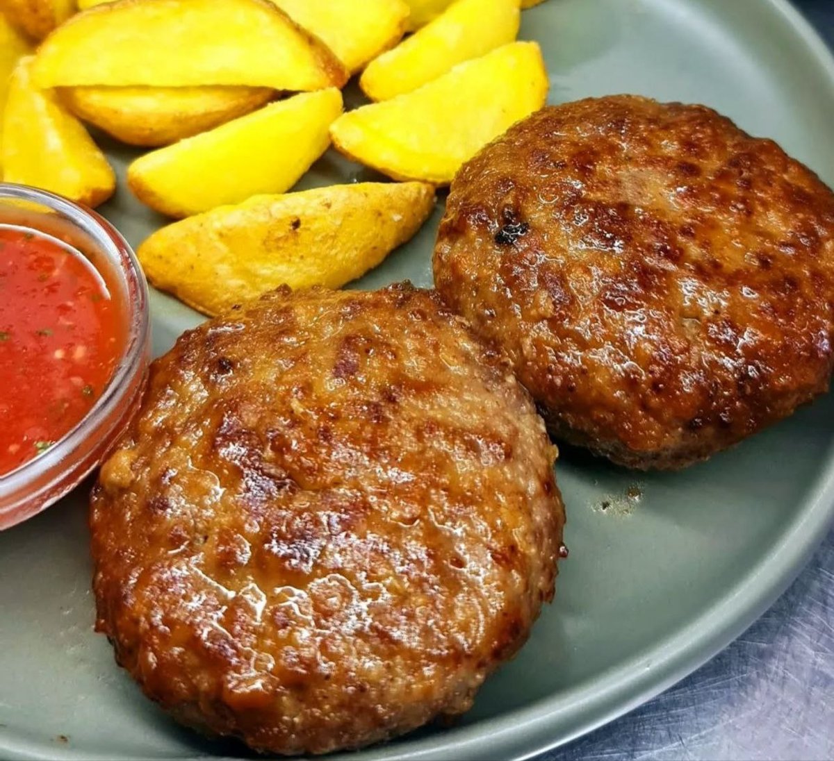 Говяжьи котлетки с соусом и картофелем фри
