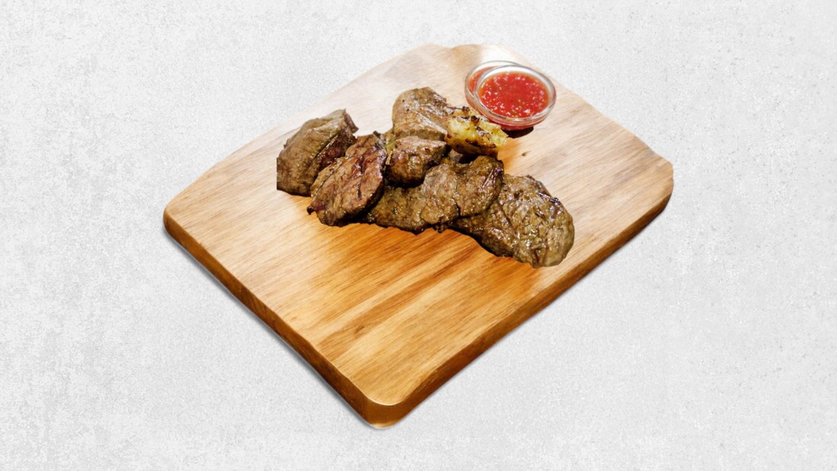 Стейк нью-йорк с печеным чесноком