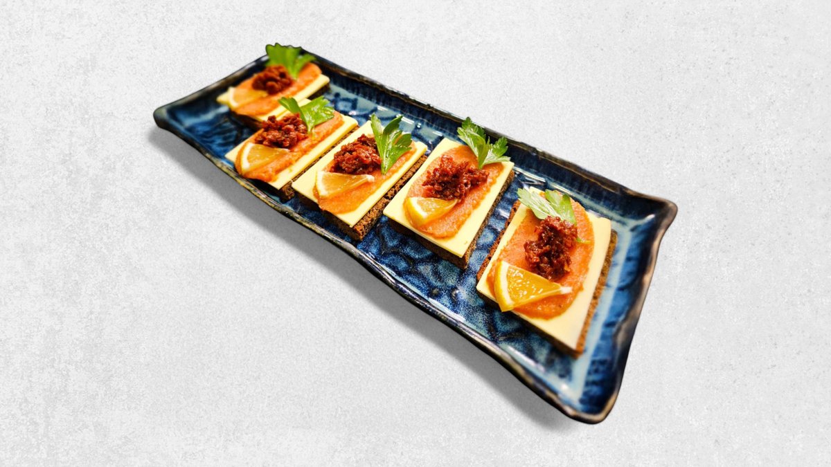 Брускетты с подкопчённой икрой жереха и вялеными томатами