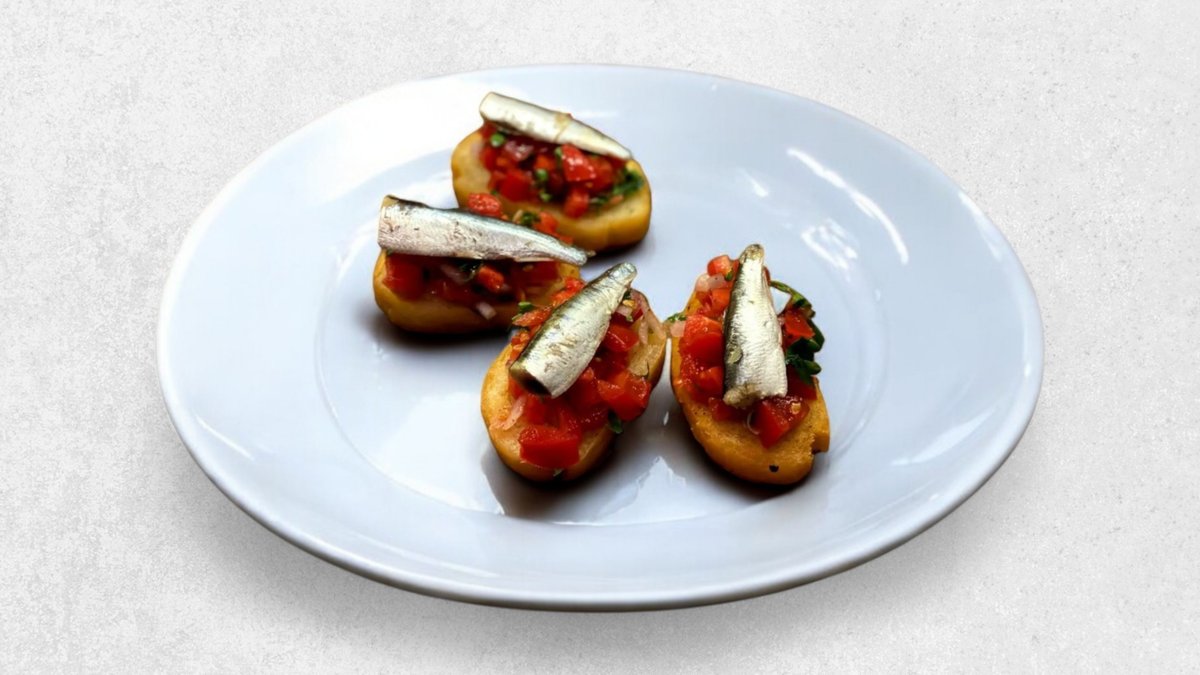 Брускетты с помидорами и солёной килькой