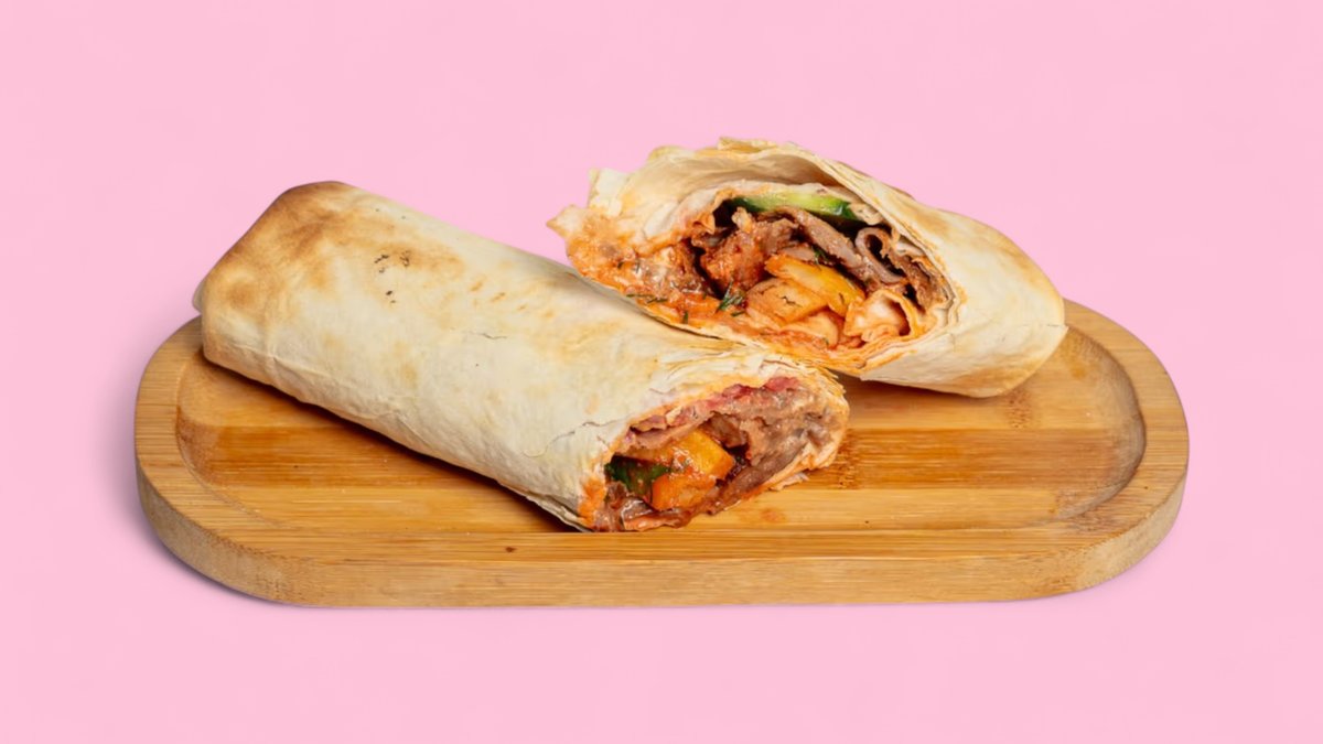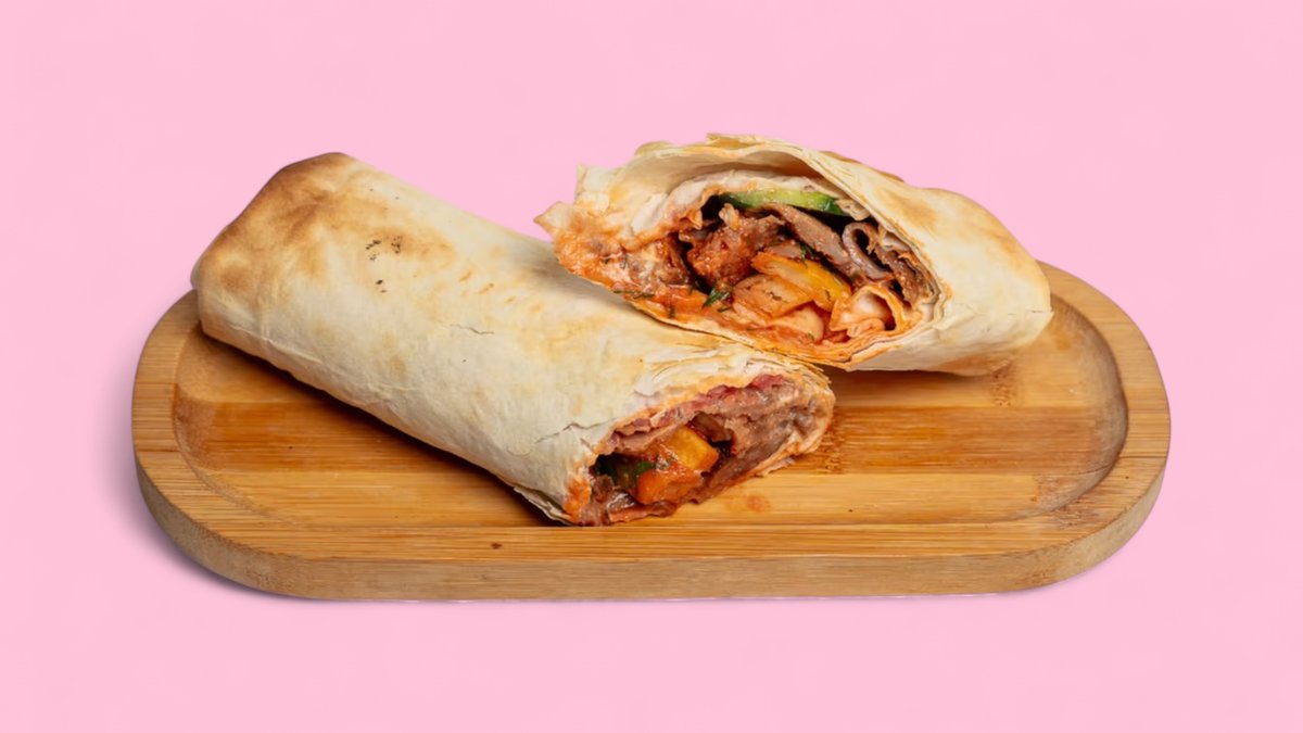 лаваш, мясо говядина, свежего огурцы, сочного помидора, соус, сыр