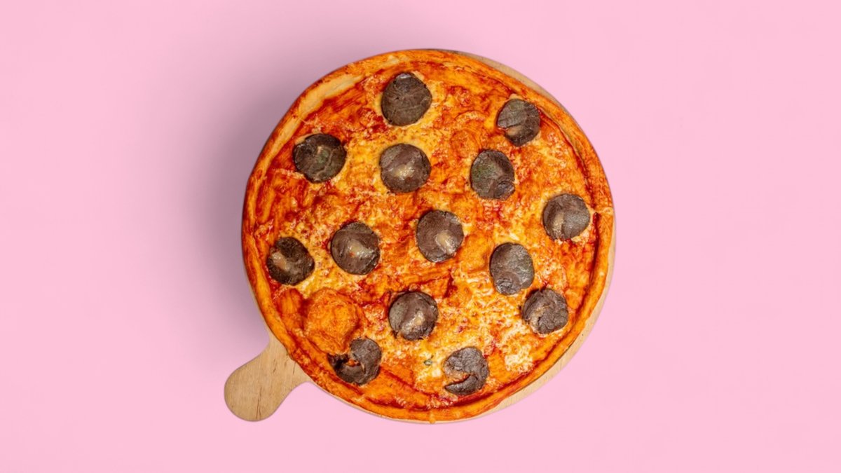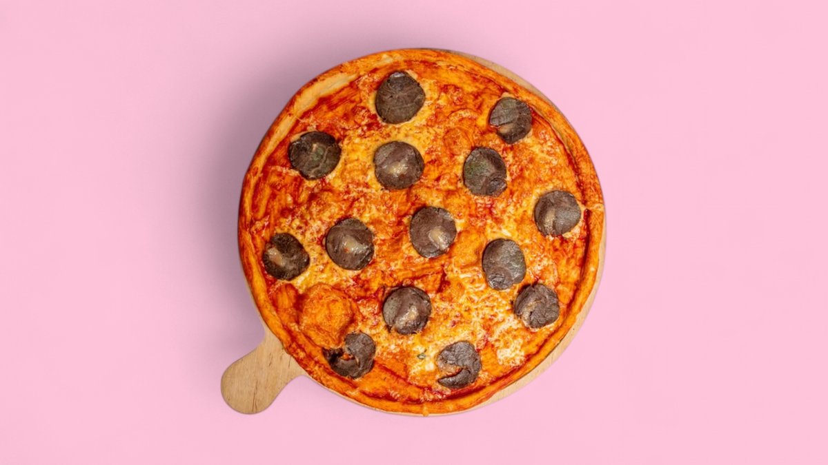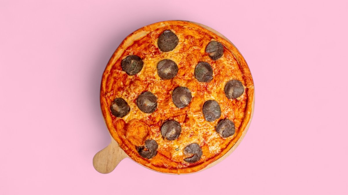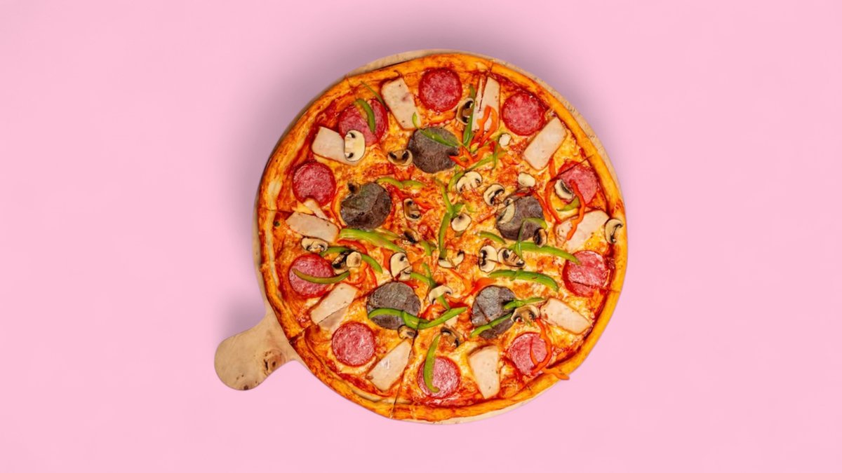 тесто, копченная колбаса, болгарский перец, индейка, казы, соус, сыр, грибы