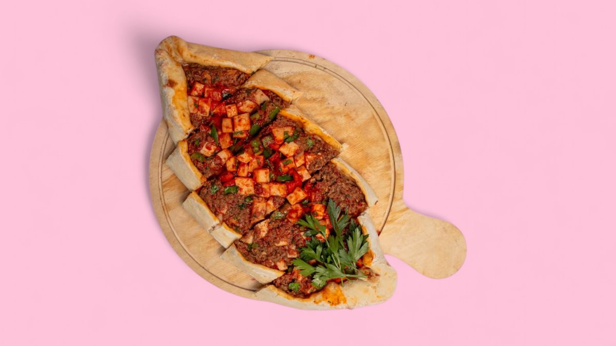 тесто, мясо, соус, оливки, соленный огурец, сыр, болгарский перец