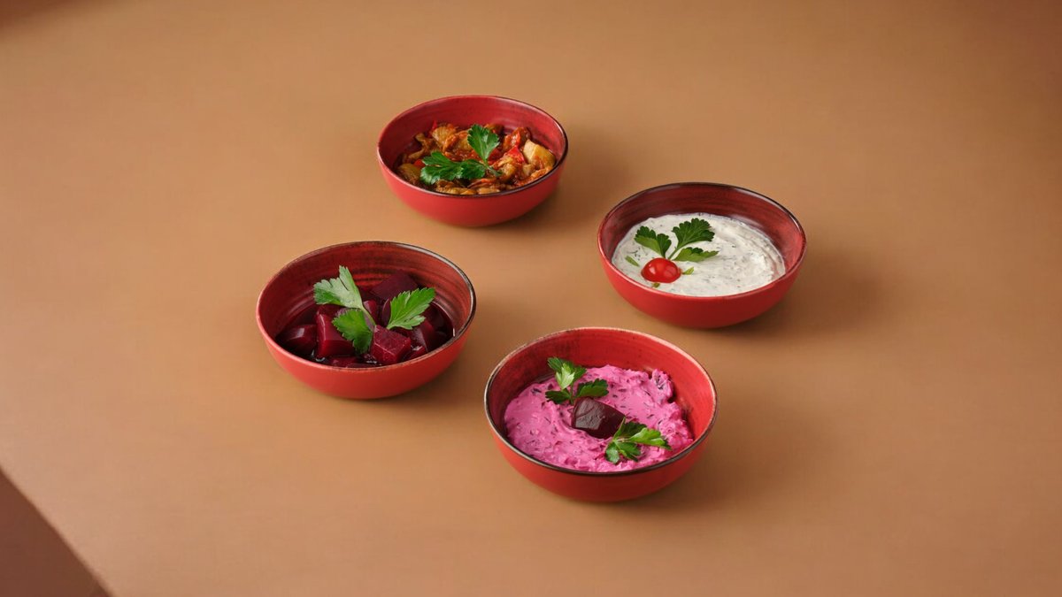 Хумус, кисир, свекла с лабне, мухаммара, абаганнус
