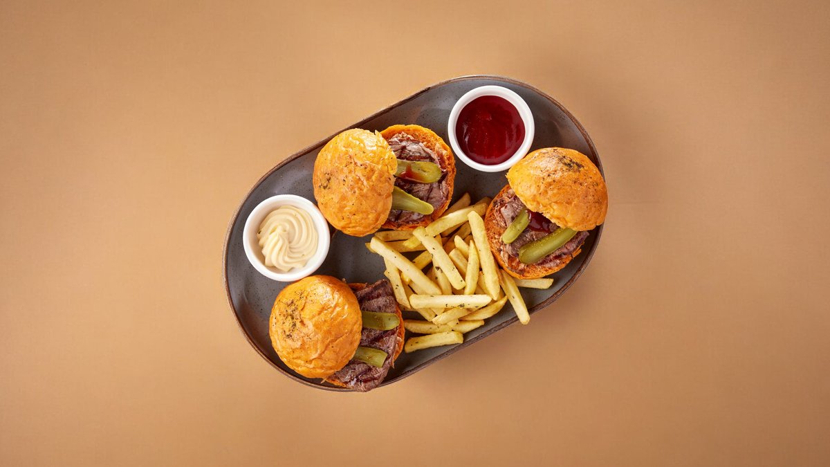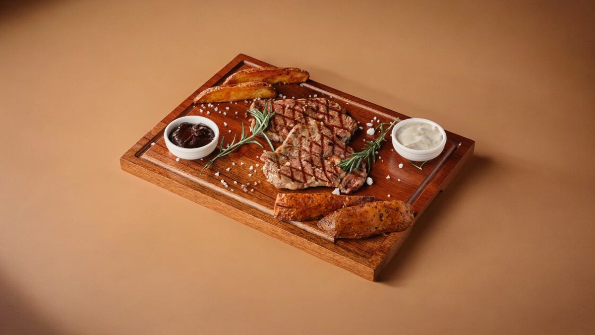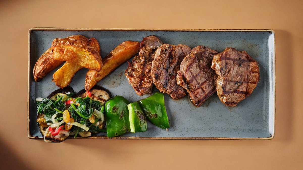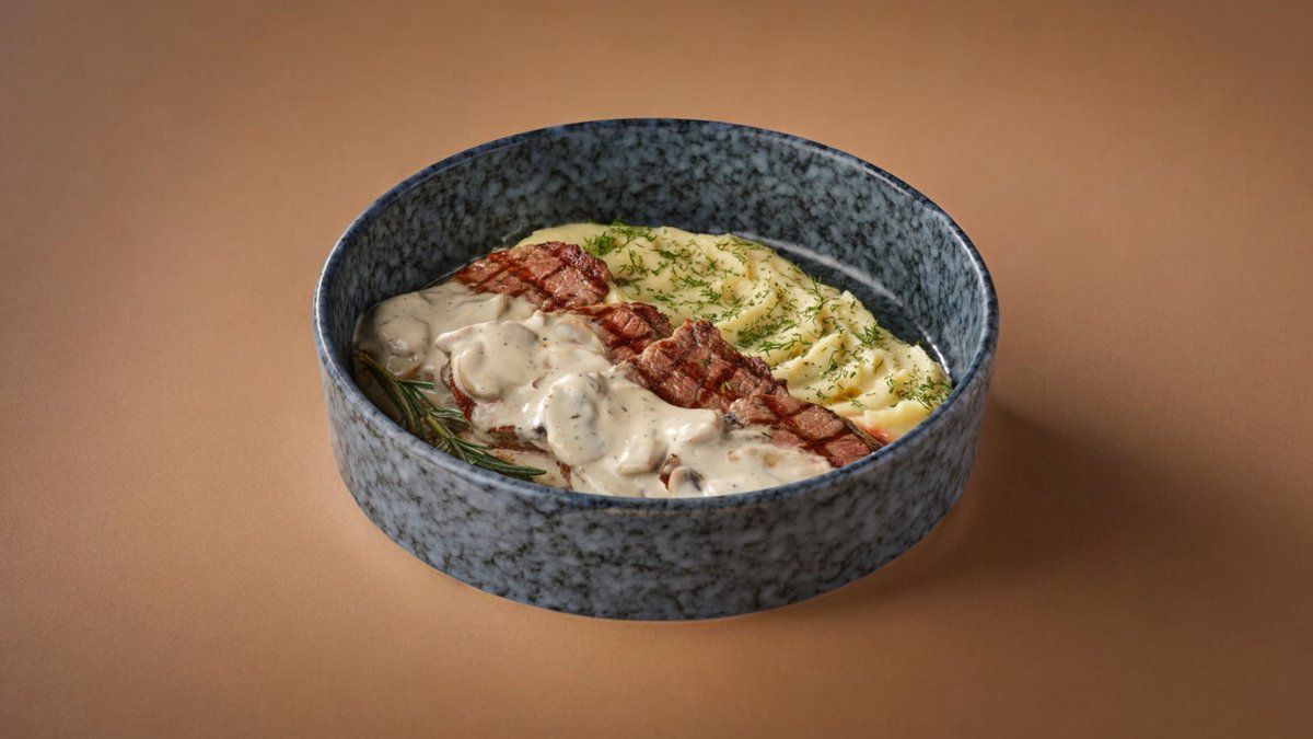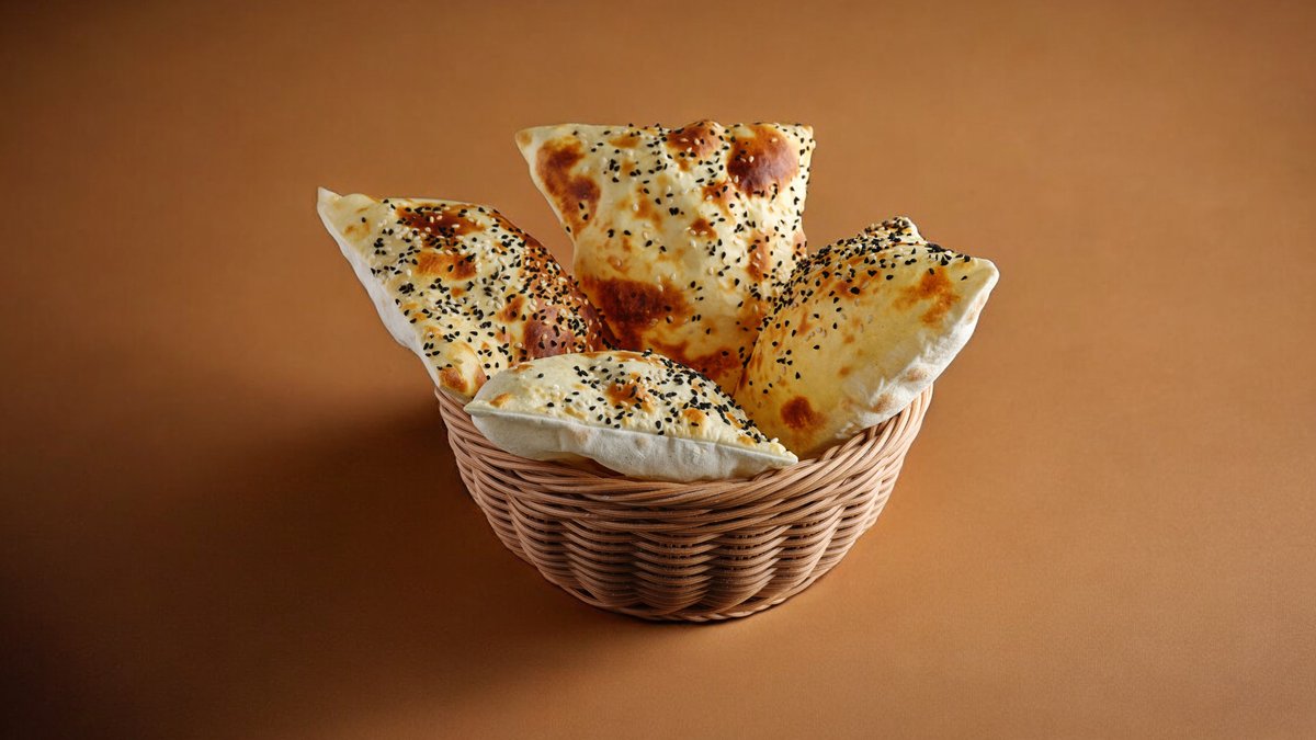 Баранина фаршированная с томатным и сливочным соусом, йогурт с фисташками подаётся с нарезанным лавашом