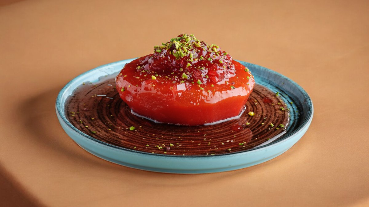 Десерт из тыквы с сиропом и дроблёным кунжутом