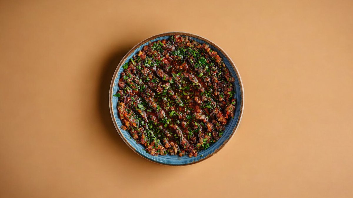 Салат с нарезанными вручную помидорами, луком,петрушкой и турецкими специями