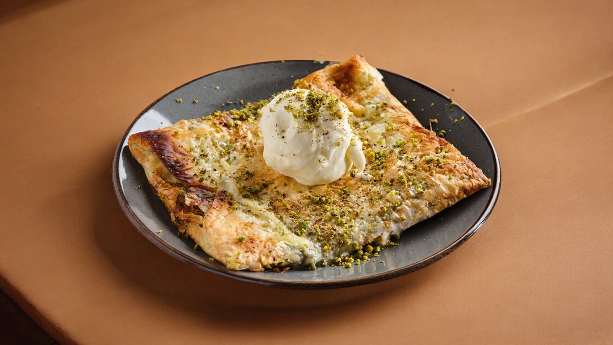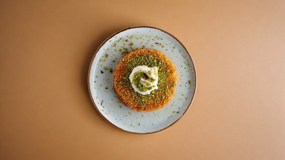 Тонкий десерт юфка с начинкой из сливок и фисташек