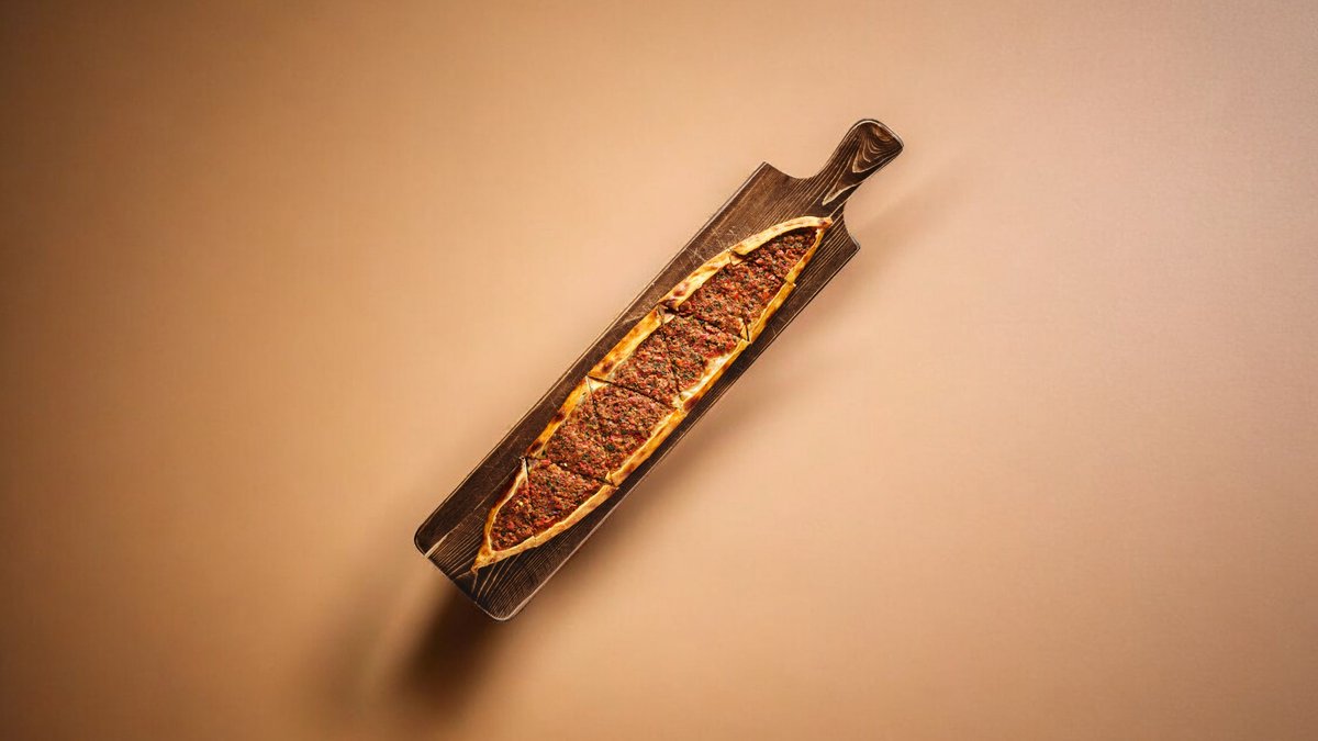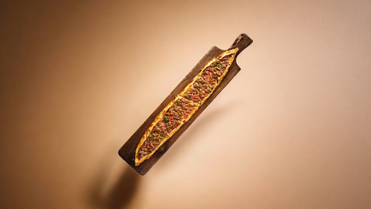 Традиционное турецкое пиде с нарезанными кубиками мяса