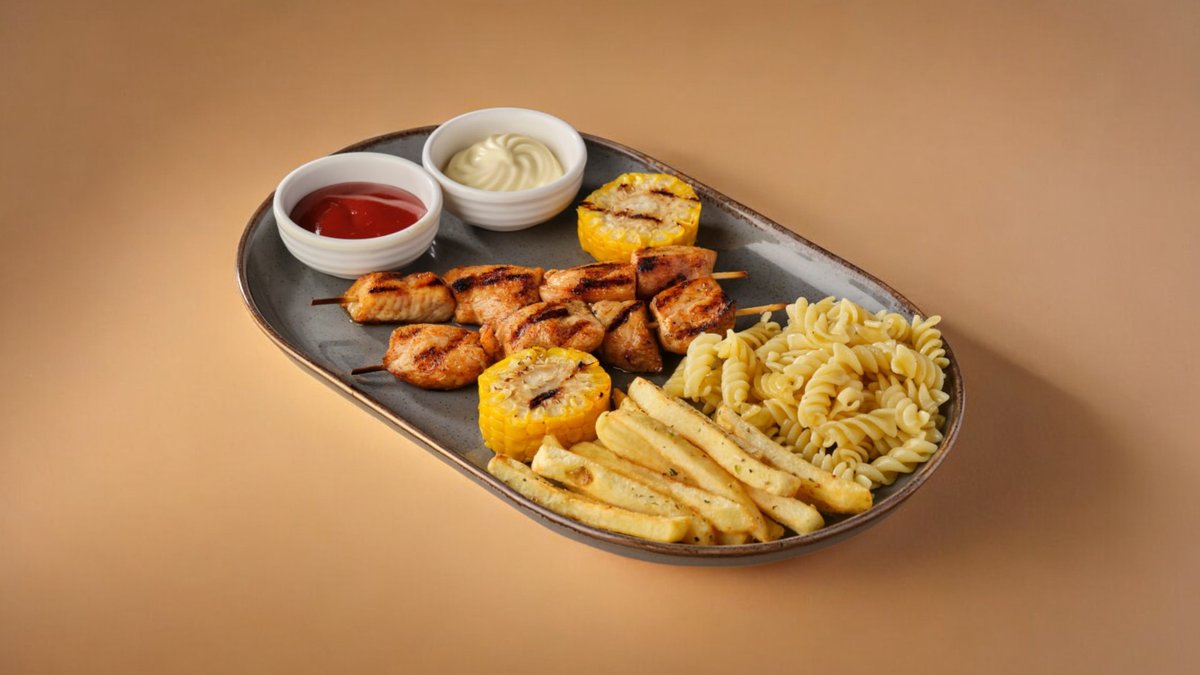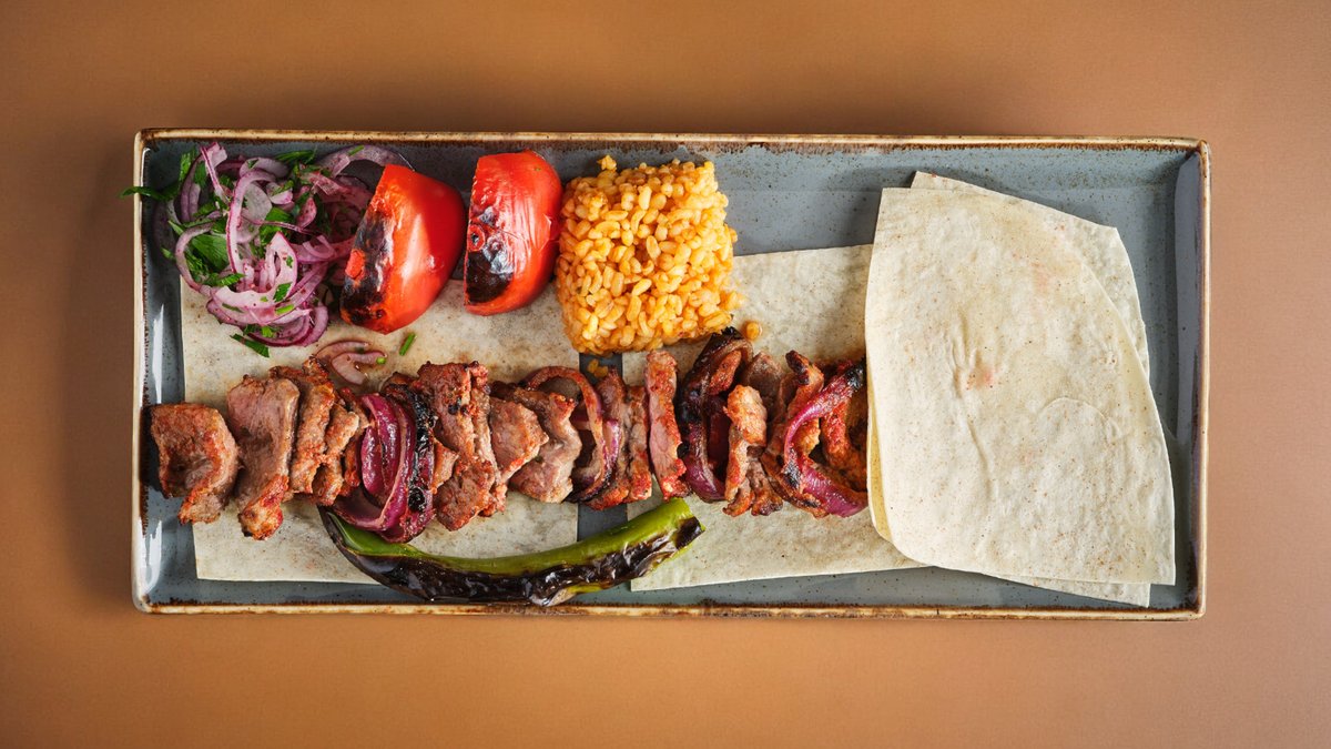 Шашлык из кунжутного лаваша на гриле с йогуртом и томатным соусом